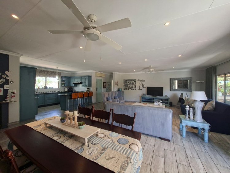 Designed with family living and convenience in mind, this property offers everything you need for a modern lifestyle. The home features three well-appointed bedrooms with built-in cupboards and two bathrooms, including a main en-suite. The spacious open-plan lounge, dining area, and kitchen with scullery creating an inviting flow for everyday living. From the dining area, doors open onto a large patio – the ideal spot to entertain guests or enjoy tranquil garden views.