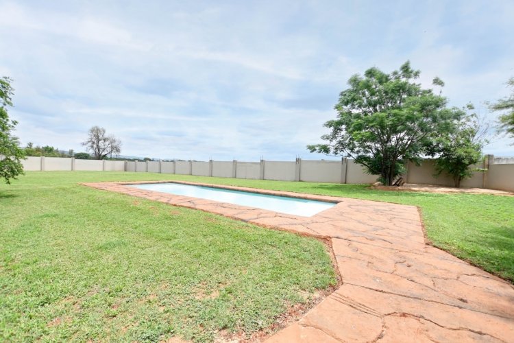 Outdoors, this exceptional property truly sets itself apart. Situated on a vast 5964m² erf, the home offers unparalleled space and privacy. The expansive garden is ideal for children and pets, while the covered patio and sparkling swimming pool create a serene outdoor retreat perfect for entertaining, relaxing, or enjoying the natural surroundings.