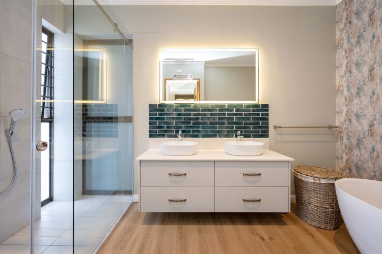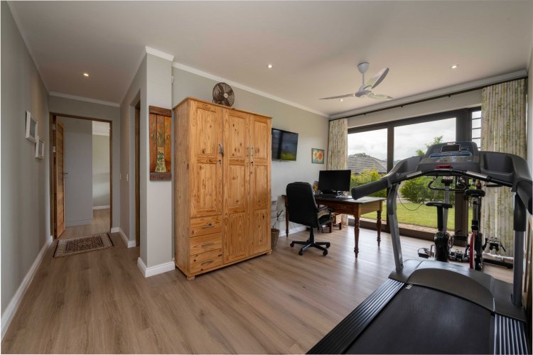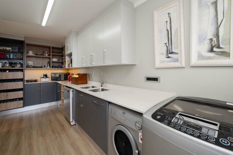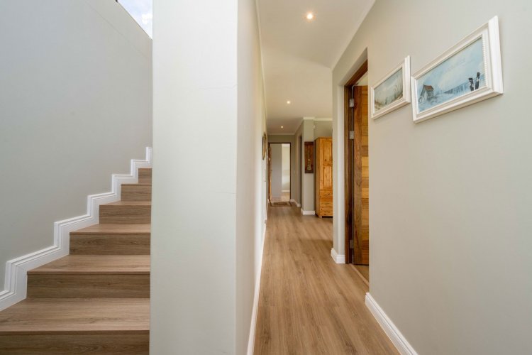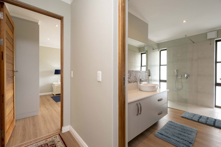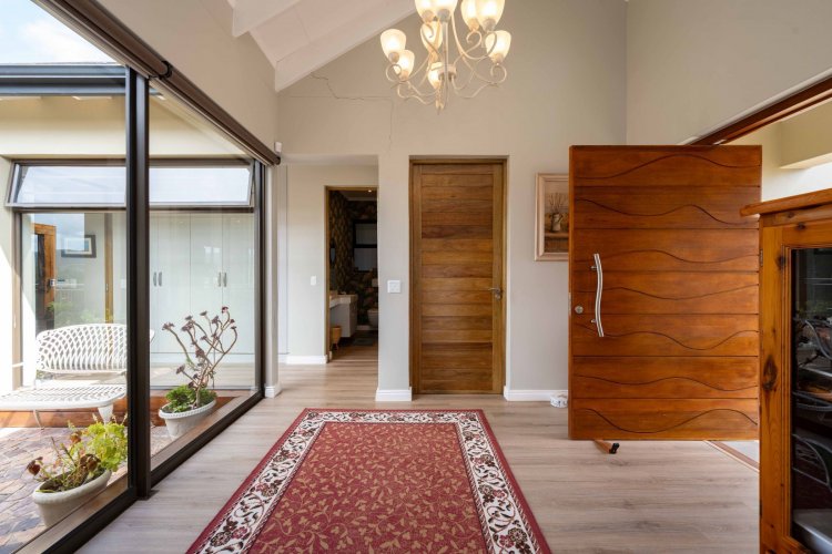 The home is further enhanced by eight solar panels, a Victron Energy inverter with lithium battery backup, and a 6 000-litre water backup system with filtration.