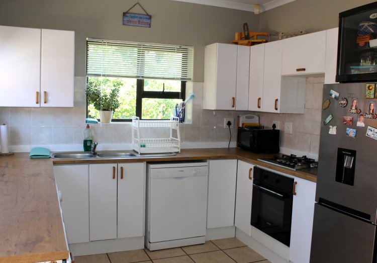 Just off the kitchen, a patio with a built-in braai creates an ideal space for relaxed outdoor entertaining, perfect for coastal living.