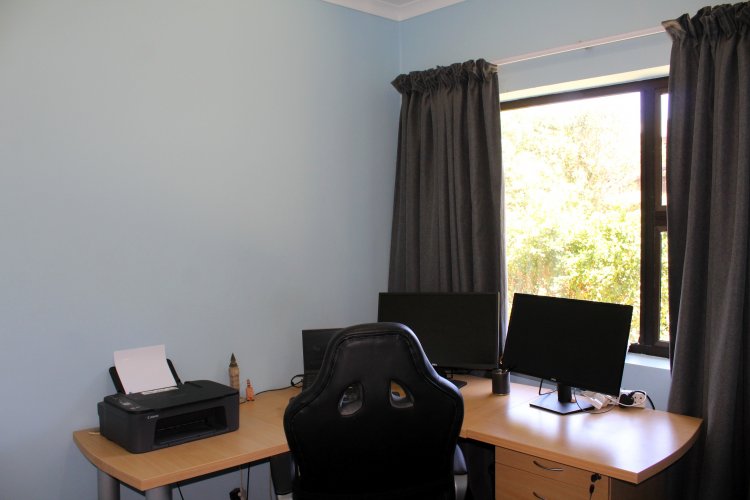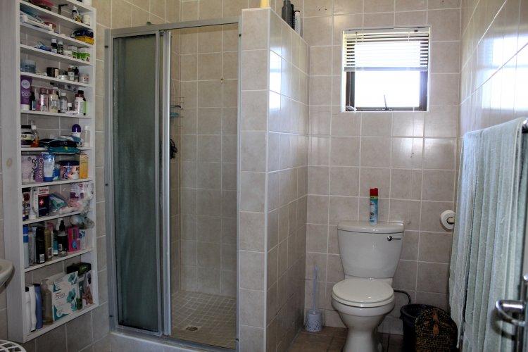 The spacious main bedroom features built in cupboards and an en-suite bathroom, while two additional guest bedrooms, both with built in cupboards, share a neat family bathroom.