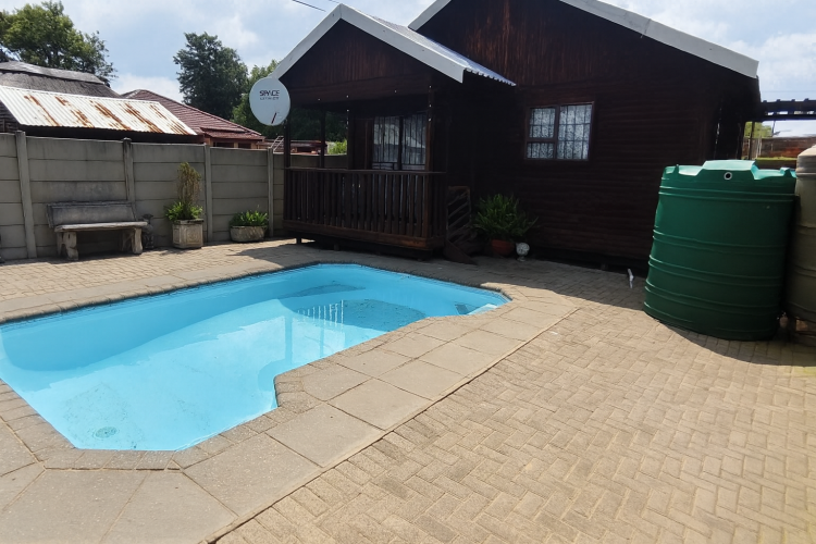 The outdoor area is designed for enjoyment, featuring a sparkling swimming pool ideal for hot summer days and family gatherings. Additional extras include a separate Wendy house for storage and a JoJo water tank with pressure pump.