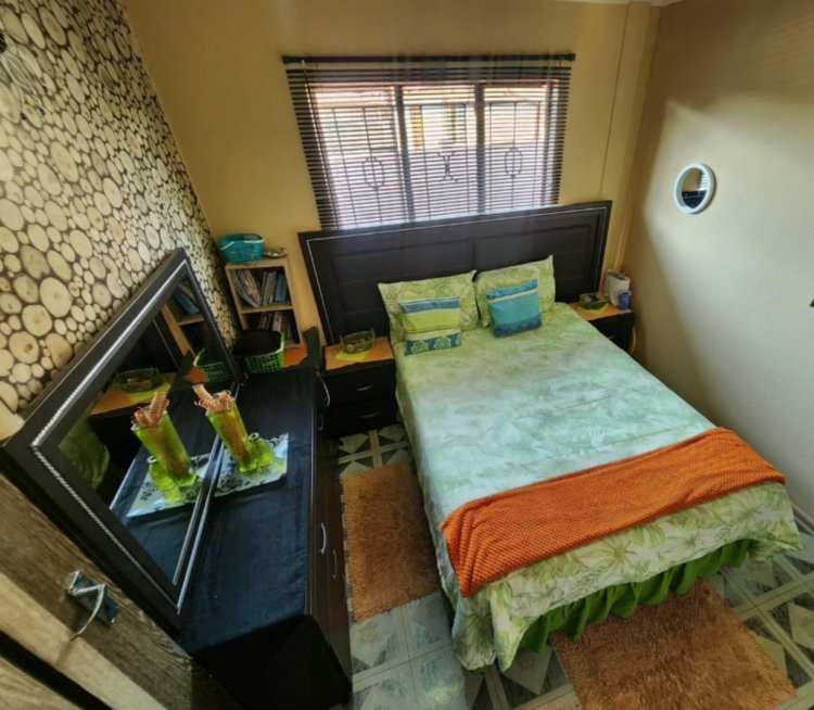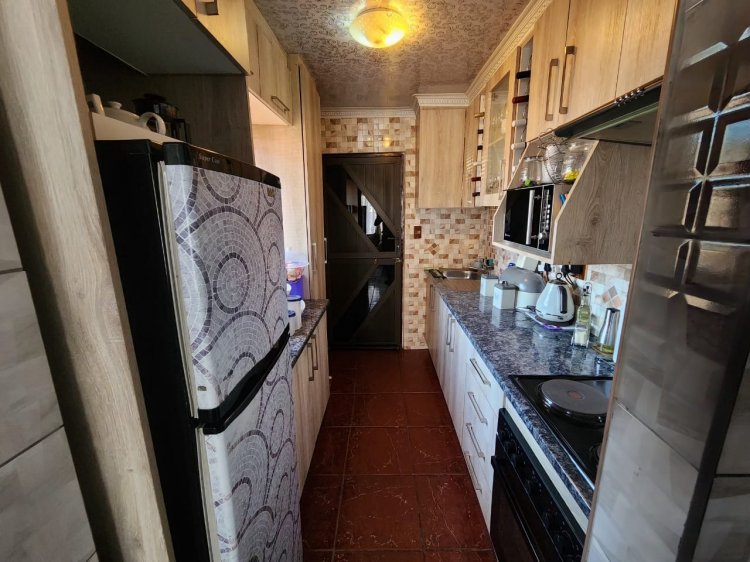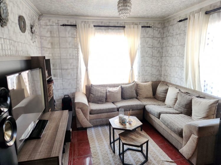 The kitchen is a highlight, featuring beautiful and modern cupboards, and the walls are tiled throughout the house, adding a bright and airy appeal. The 3 well-sized bedrooms and 1 bathroom are neatly tiled, providing a comfortable living space.
