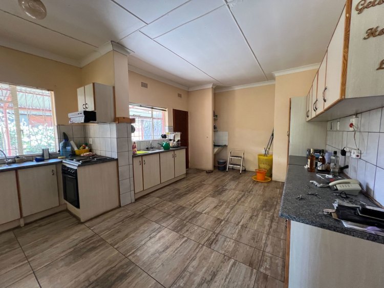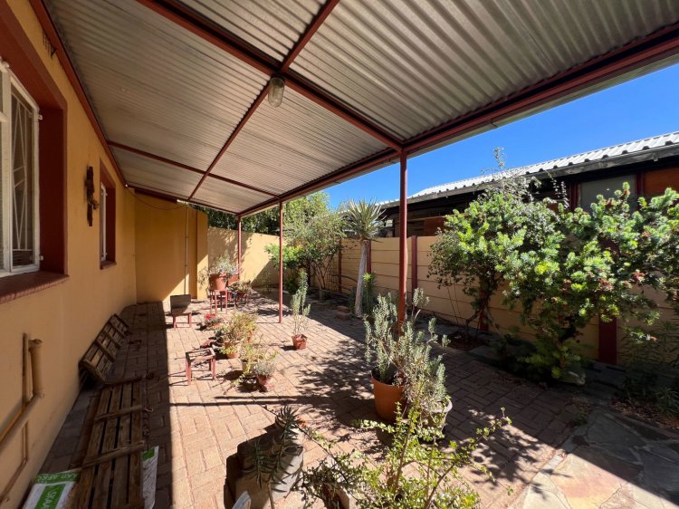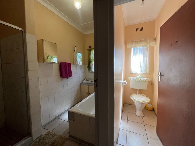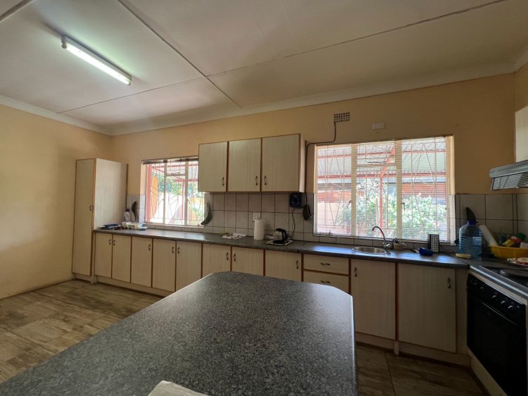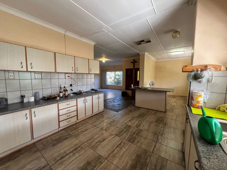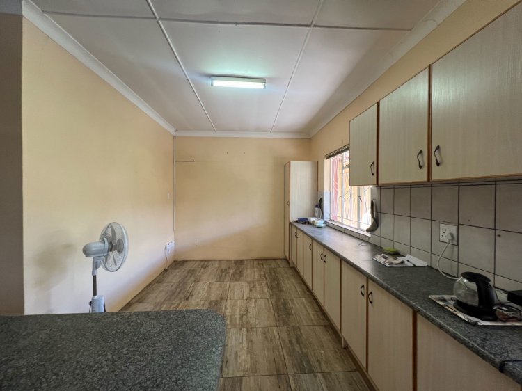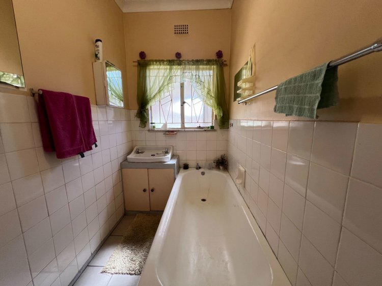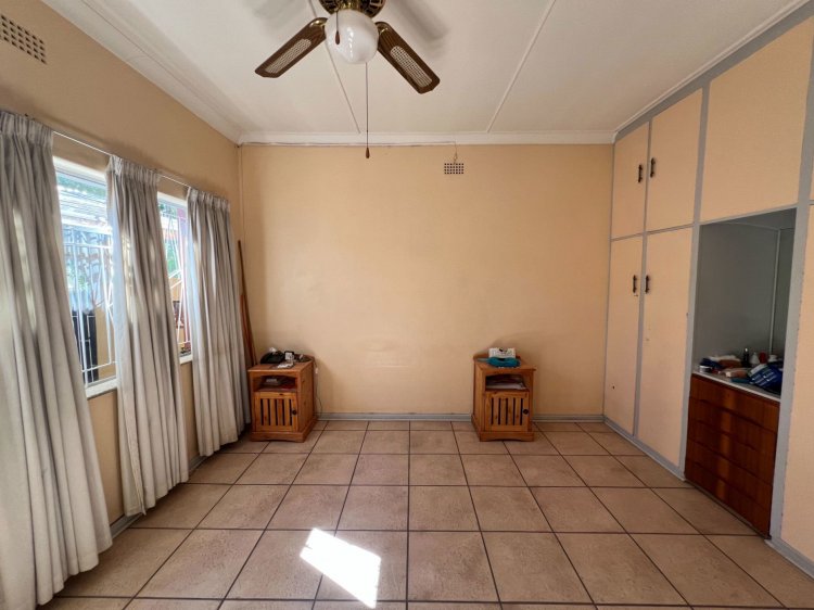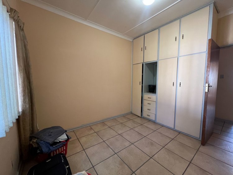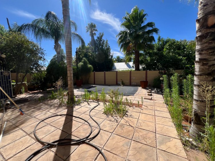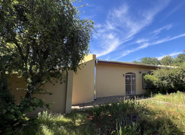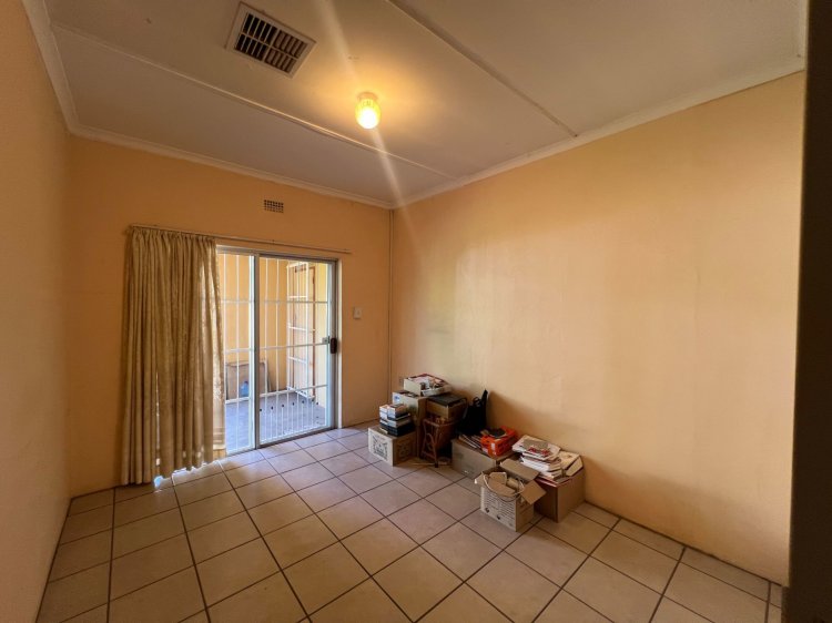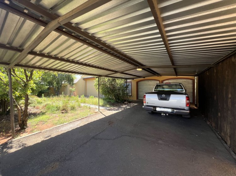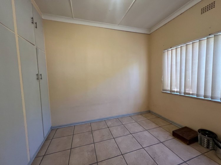 It offers 3 bedrooms with built-in cupboards, plus an extra room perfect for a home office. The bathroom includes a bath, shower, basin, toilet, and built-in storage, with an additional outside toilet for convenience. The bright open-plan living and dining area connects smoothly to the kitchen, which leads outside to an undercover braai area and swimming pool—ideal for effortless entertaining. Enjoy a double garage, double carport, and a lush garden with automated irrigation. Extras include a water cooler and burglar bars.