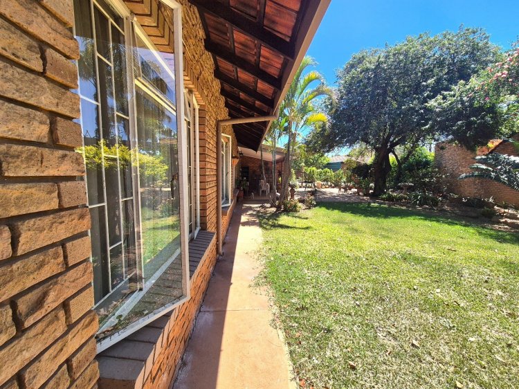 Die eiendom is ‘n voltitel erf met ‘n groter tuin as die meeste huise in die kompleks (806m2 erf), en bied die perfekte balans tussen leefruimte en buiteluggenot. ’n Dubbele afdak verwelkom jou aan die voorkant van die huis, wat aansluit by ’n dubbel motorhuis met die bykomende voordeel van ’n ekstra buite toilet – ideaal vir gaste of buitewerkers.