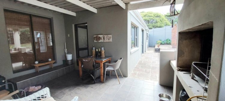 The cosy entertainment area is ideal for hosting, complete with a built-in braai, jacuzzi, and separate ablution facilities — perfect for relaxed family gatherings.