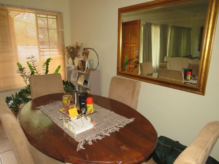 • Living Room • Dinging Room • Kitchen • Pantry Cupboard • Scullery • Covered patio with built-in braai • Main Bedroom with en-suite bathroom • Two Bedrooms sharing second bathroom • Double Garage • Perimeter Wall • Electrical Access Gate • Swimming Pool • 5000L Water Tank with pressure pump