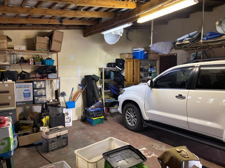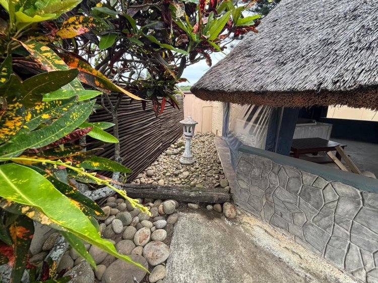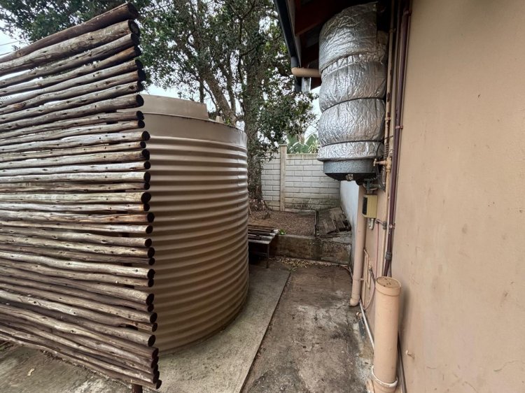 Security is top-tier with a full alarm system, sensor lighting, perimeter walling, and automated access gate. A 5,000L Jojo tank is plumbed into the home, and a 5kVA inverter ensures uninterrupted electrical supply during power outages.