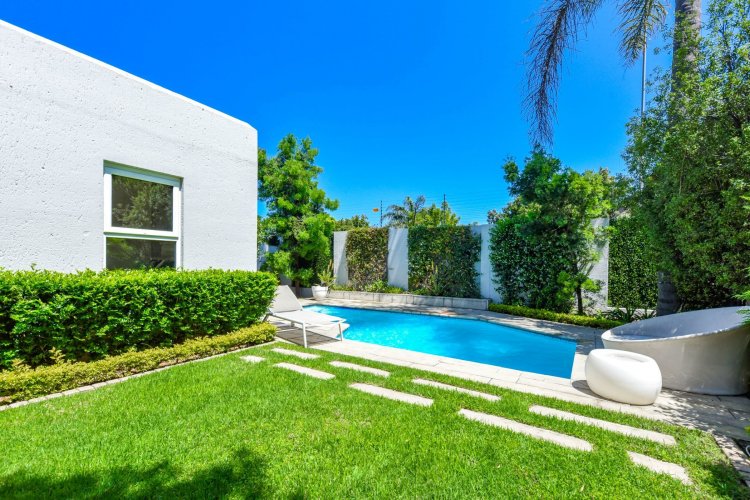 The bright and airy living spaces flow seamlessly to the outdoor entertainment area, where a sparkling pool and inviting patio set the scene for memorable gatherings with family and friends.