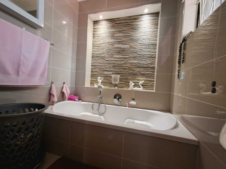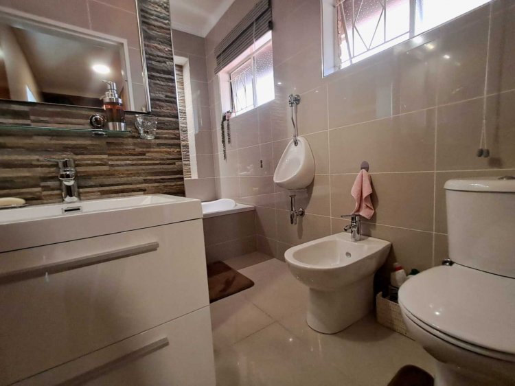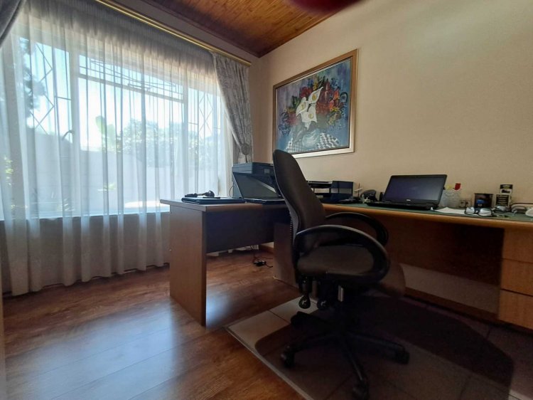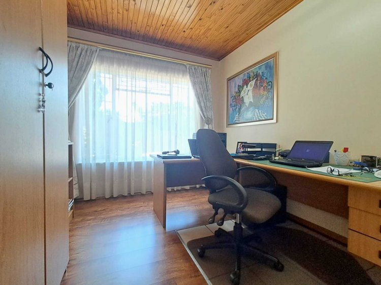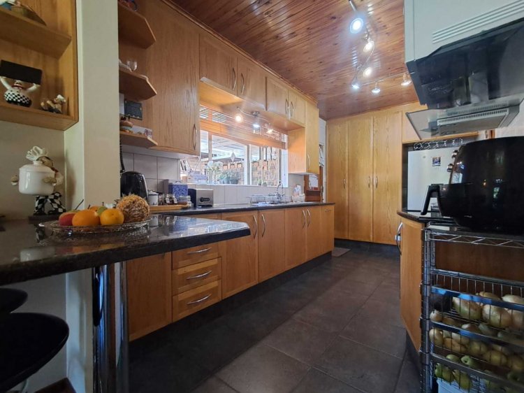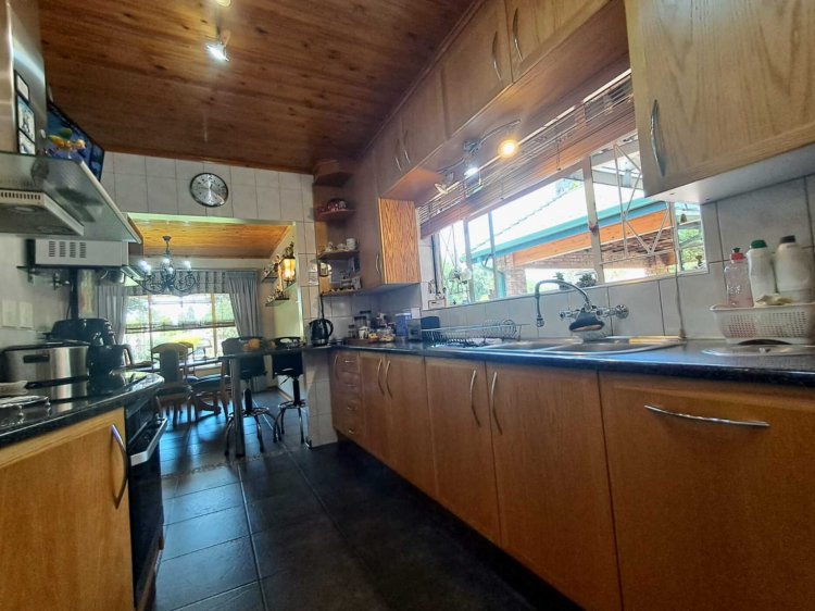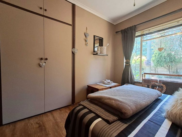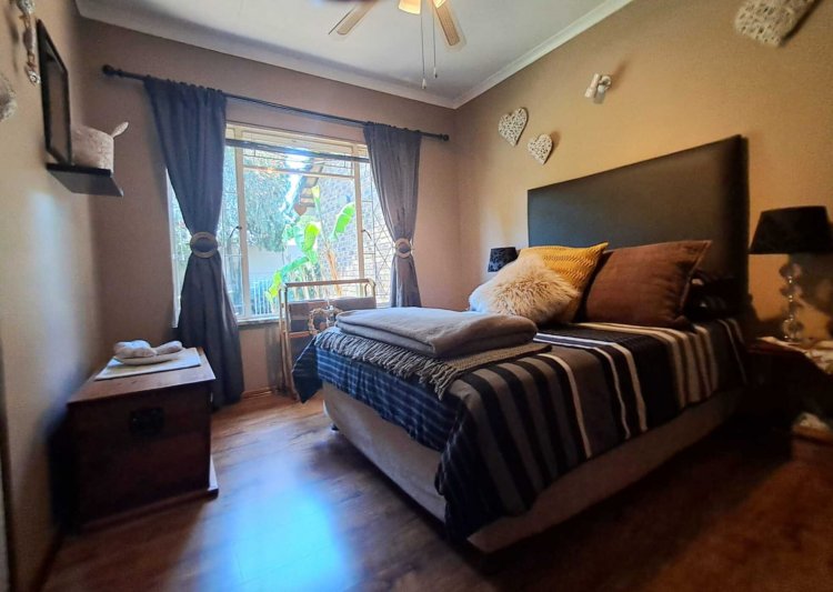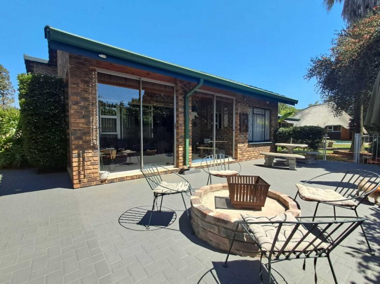 Highlights: 3 Spacious bedrooms with built-in cupboards 2 bathrooms (main en-suite with gas & solar geysers) Extra outside room & bathroom – ideal for guests or extended family Beautiful kitchen with granite tops & gas stove. Lounge, dining room, study & built-in bar – perfect for entertaining Sunroom with patio doors leading to a cozy fire-pit area.