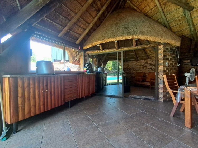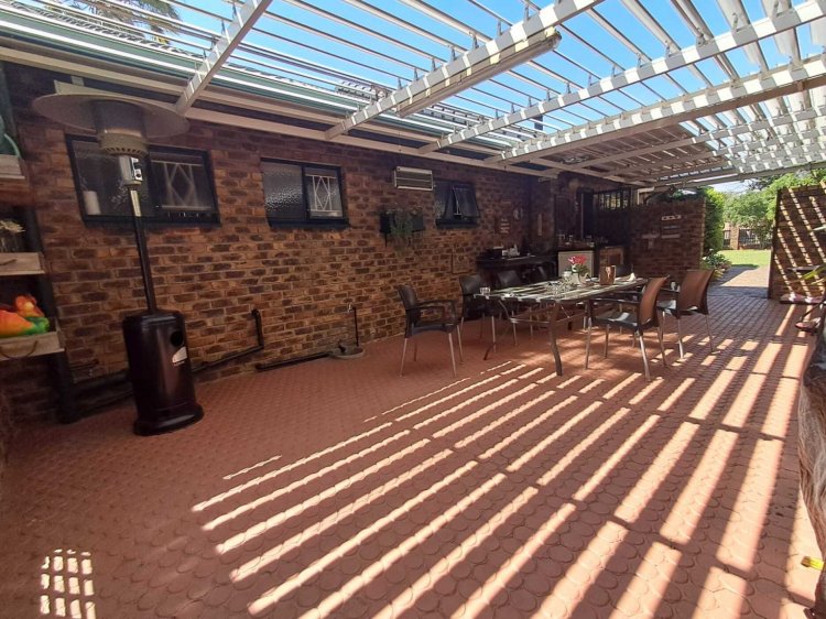 Entertainment Paradise: Enclosed lapa with indoor braai and Jacuzzi. Covered patio with outdoor kitchen (gas hob, granite tops, dishwasher point) Private boma, outside braai, and sparkling swimming pool Immaculate irrigated garden – ideal for pets & family fun