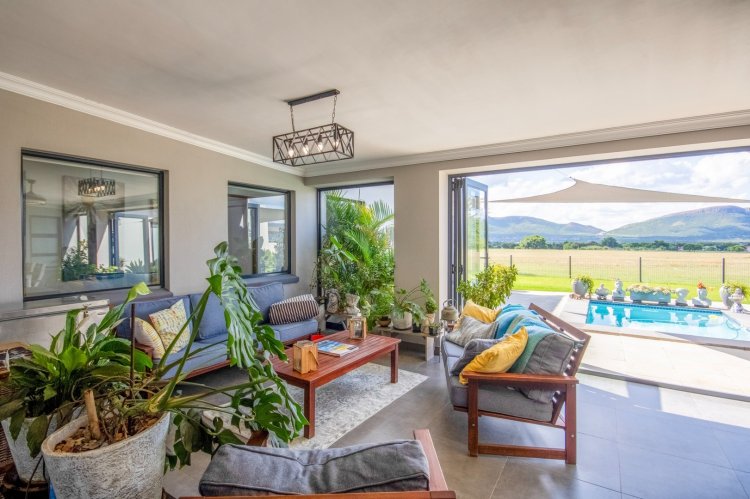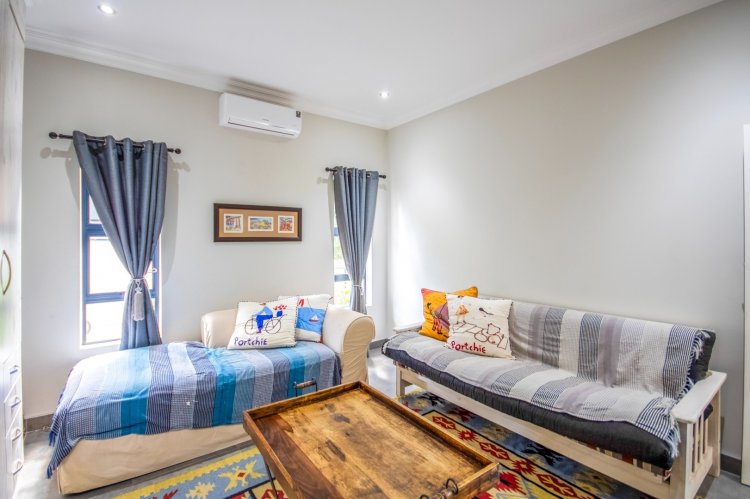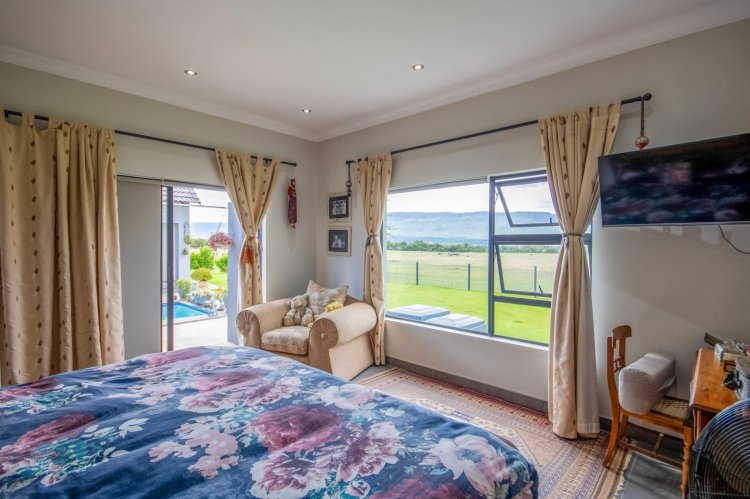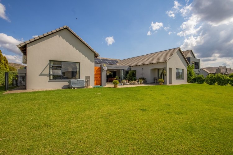 The home’s central living areas flow effortlessly onto an enclosed entertainment patio, perfect for year-round gatherings, overlooking the sparkling pool and expansive garden. Beyond your garden lies a tranquil greenbelt, where buck roam freely and uninterrupted views stretch across open grasslands and natural beauty. Practicality meets convenience with ample parking, including a double garage, covered carports, and an additional single garage, ideal for extra vehicles, a workshop, or storage. An efficient solar system powers approximately 80% of the home’s energy needs, providing both cost savings and peace of mind during load-shedding. The estate's water is supplied by borehole and the house also offers a backup storage tank.