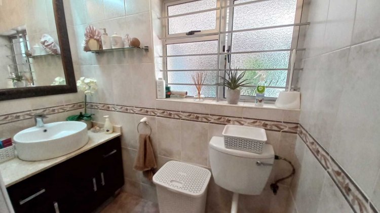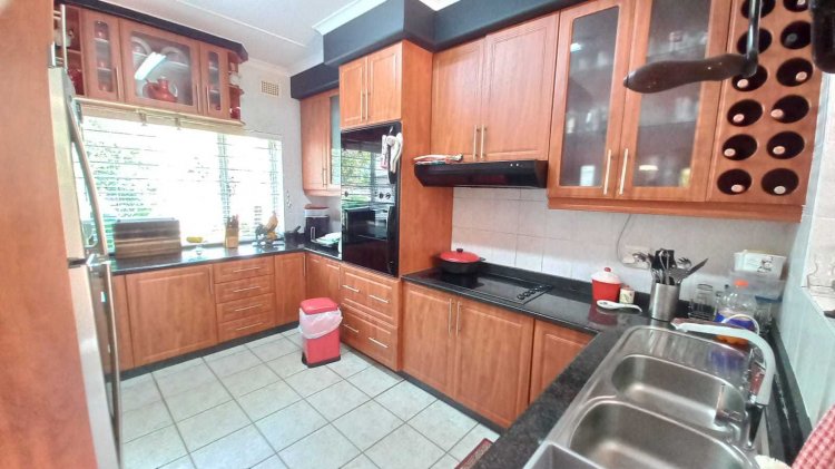 The property lends itself for outdoor entertaining with it’s large covered patio, braai area and sun drenched pool.