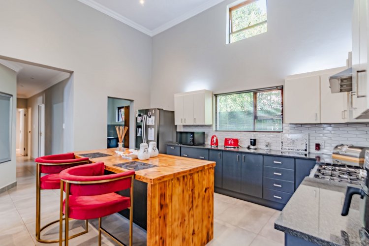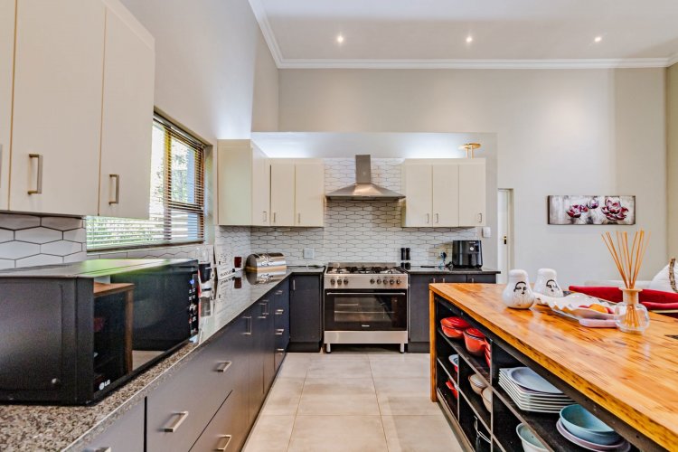 The kitchen and scullery are well planned with lots of style, offering granite tops, wood cupboards and an elegant gas stove. The main en-suite bedroom is spacious with a full bathroom, built-in cupboards, a TV point and access to the garden. Two bedrooms share a family bathroom and both have access to the garden as well. Other features include a double garage with workspace, an undercover patio with a braai, staff quarters and a store room. Willow Acres is a quiet and secure estate, offering easy access to major highways, schools, shopping center's and hospitals. The Clubhouse offers an event venue at a nominal fee, daily cooked meals, a tennis court and a kids' play area.