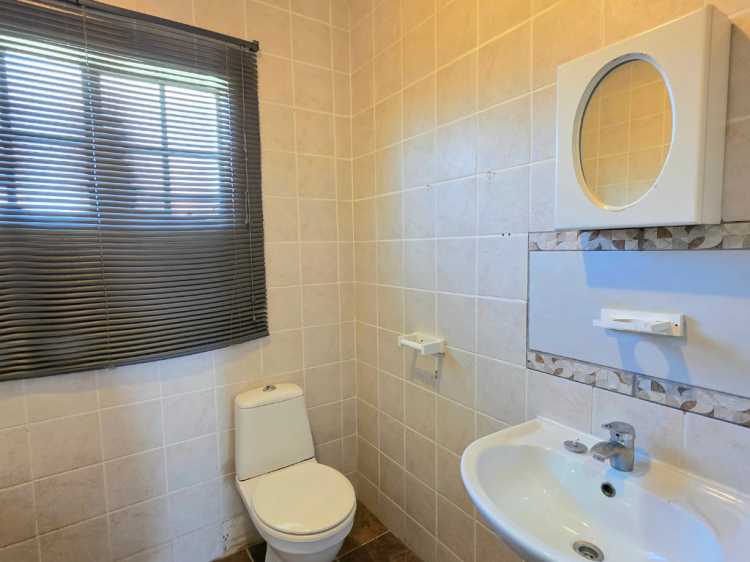 Enjoy a modern open-plan kitchen and lounge, perfect for relaxed family living. The kitchen is fitted with granite countertops, ample cupboard space, and a separate scullery. The lounge includes an air conditioner for year-round comfort.