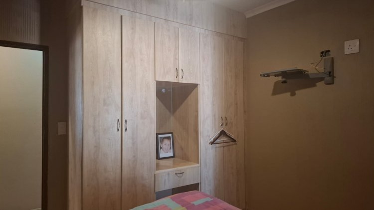 Outdoors, you’ll find a lapa with a built-in braai, swimming pool, and a generous backyard — spacious enough to build another house. With two entrances, one leading to the backyard, there’s plenty of space for additional parking or even separate access for guests.