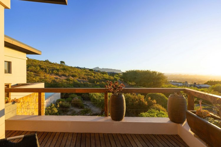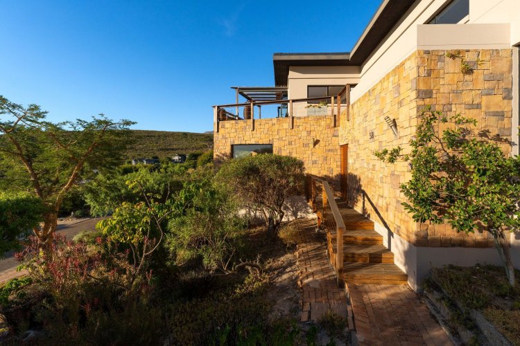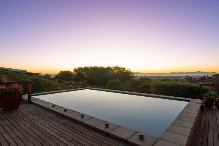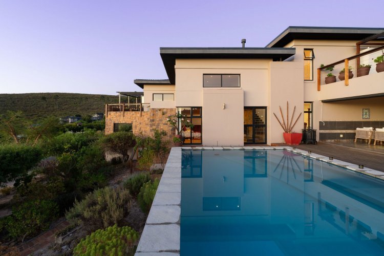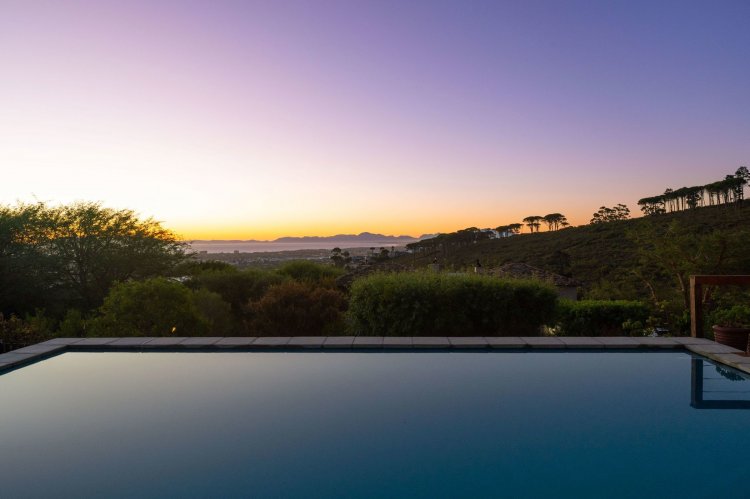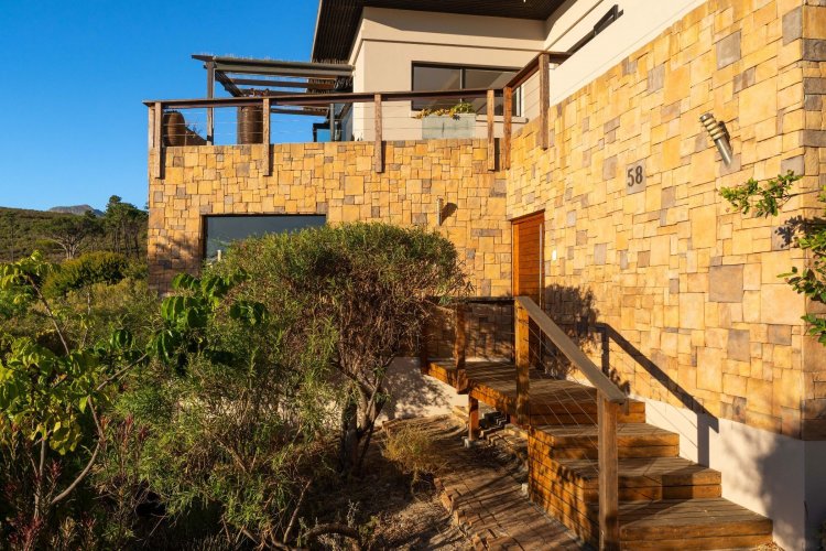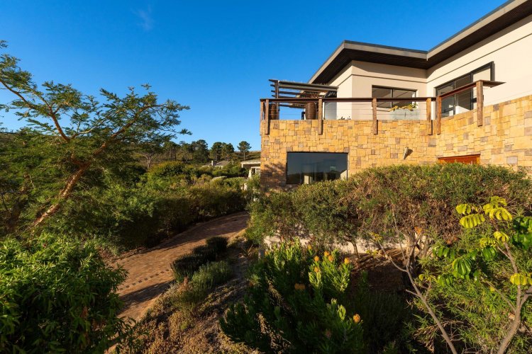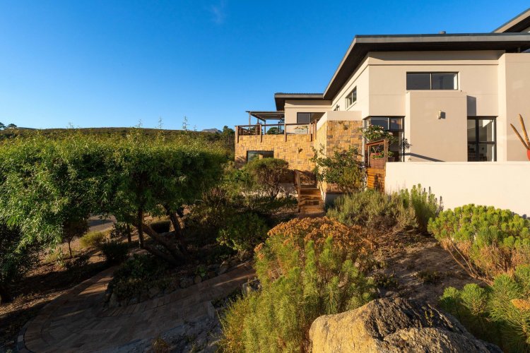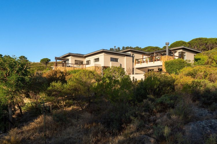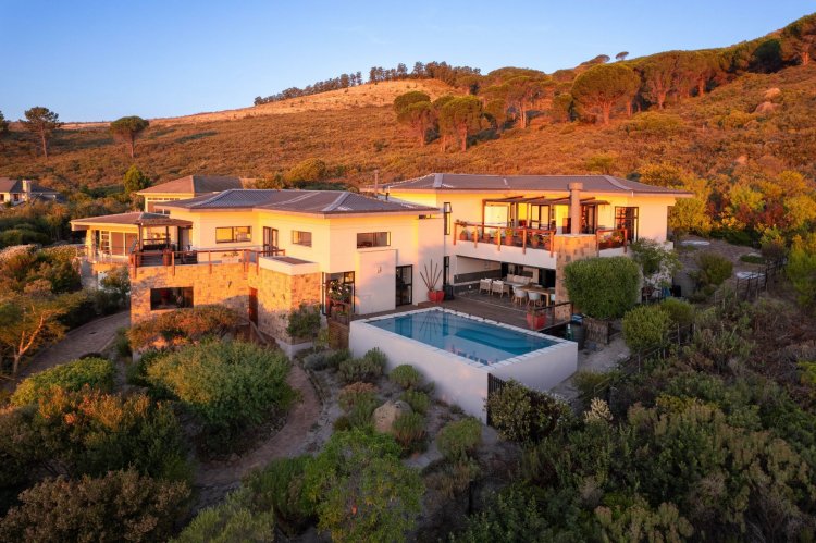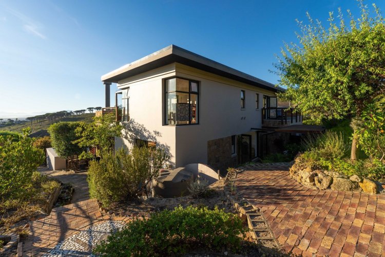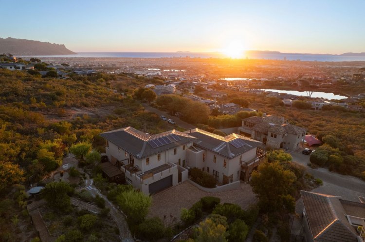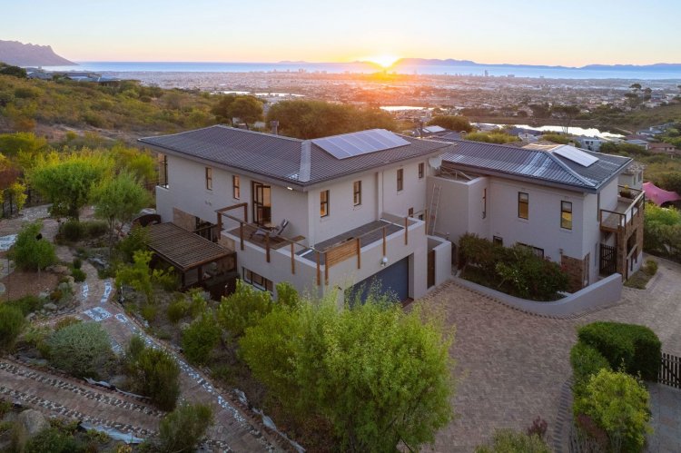 Officially recognised as a private nature reserve by CapeNature, Boskloof Eco Estate is set within 51 hectares of pristine fynbos and protected Renosterveld, offering a rare lifestyle where luxury, security, and sustainability exist in perfect harmony. With only 72 homes built and no further erven available—resulting in approximately 10% of the land developed—the estate preserves its natural beauty while delivering exceptional privacy, tranquillity, and uninterrupted views across the Helderberg Mountains, False Bay, Table Mountain, and the Cape of Good Hope. Positioned on one of the highest and largest stands in the estate, this exceptional home enjoys a truly privileged setting, with no neighbouring properties to the south or east, ensuring privacy, open skies, and sweeping vistas. The beautifully established garden is both water-wise and low maintenance, thoughtfully designed with multiple spaces to pause, entertain, and fully appreciate the surrounding landscape. Architecturally designed to blend seamlessly into its natural environment, the home follows the hillside's natural contours through a multi-level layout, restrained landscaping, and environmentally conscious construction. A double-volume lounge with expansive glazing frames breathtaking mountain and sea views. Two exquisitely crafted, German-imported kitchens anchor the living spaces. The primary kitchen is seamlessly connected to the dining room, bar nook, and an elegant patio with swimming pool and built-in braai, creating a natural setting for sophisticated entertaining. A second kitchen is discreetly positioned within a fully self-contained flat. Accommodation includes a luxurious main bedroom with private balcony and spa-style en-suite, additional lounges and study areas, a self-contained guest suite, and a temperature-controlled wine cellar. Every room has been carefully positioned to capture the estate's remarkable outlook, offering a sense of calm, comfort, and refined living throughout. Sustainability is seamlessly integrated with two separate solar systems—one dedicated to hot water and a photovoltaic installation for general electricity—resulting in very substantial energy savings. The estate itself has also made a significant investment in high-end security upgrades in recent years, providing residents with peace of mind without compromising the natural, open character of the surroundings. Boskloof Eco Estate is more than a home—it is a rare and protected sanctuary where nature leads, privacy is paramount, and luxury quietly follows.