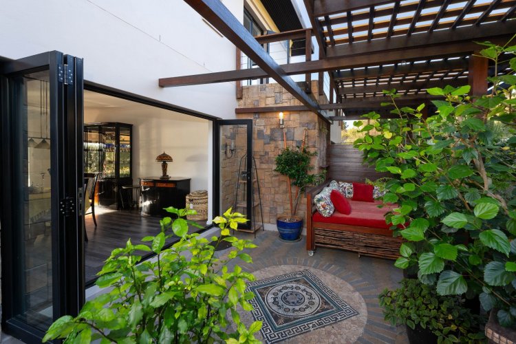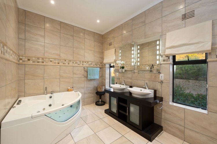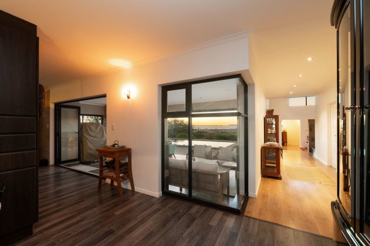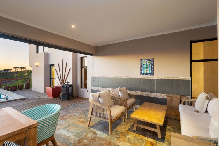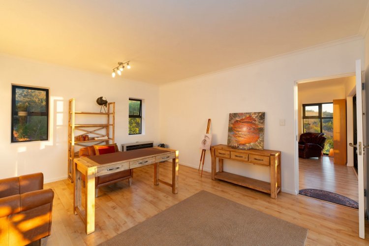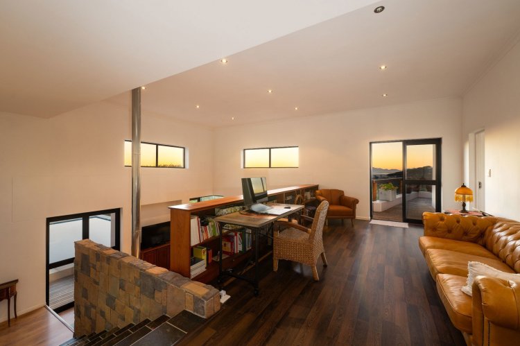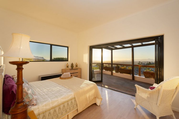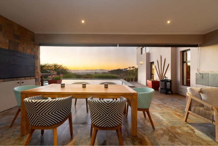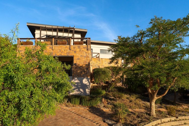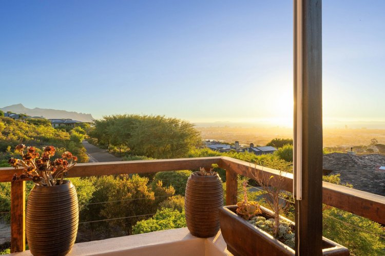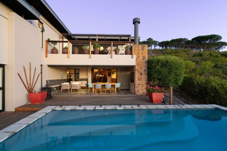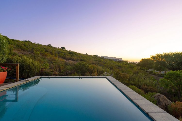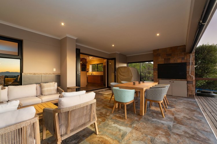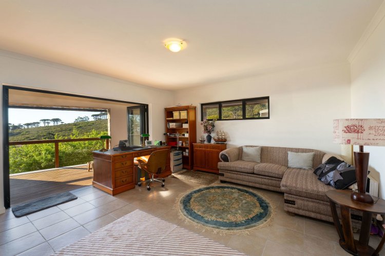 Officially recognised as a private nature reserve by CapeNature, Boskloof Eco Estate is set within 51 hectares of pristine fynbos and protected Renosterveld, offering a rare lifestyle where luxury, security, and sustainability exist in perfect harmony. With only 72 homes built and no further erven available—resulting in approximately 10% of the land developed—the estate preserves its natural beauty while delivering exceptional privacy, tranquillity, and uninterrupted views across the Helderberg Mountains, False Bay, Table Mountain, and the Cape of Good Hope. Positioned on one of the highest and largest stands in the estate, this exceptional home enjoys a truly privileged setting, with no neighbouring properties to the south or east, ensuring privacy, open skies, and sweeping vistas. The beautifully established garden is both water-wise and low maintenance, thoughtfully designed with multiple spaces to pause, entertain, and fully appreciate the surrounding landscape. Architecturally designed to blend seamlessly into its natural environment, the home follows the hillside's natural contours through a multi-level layout, restrained landscaping, and environmentally conscious construction. A double-volume lounge with expansive glazing frames breathtaking mountain and sea views. Two exquisitely crafted, German-imported kitchens anchor the living spaces. The primary kitchen is seamlessly connected to the dining room, bar nook, and an elegant patio with swimming pool and built-in braai, creating a natural setting for sophisticated entertaining. A second kitchen is discreetly positioned within a fully self-contained flat. Accommodation includes a luxurious main bedroom with private balcony and spa-style en-suite, additional lounges and study areas, a self-contained guest suite, and a temperature-controlled wine cellar. Every room has been carefully positioned to capture the estate's remarkable outlook, offering a sense of calm, comfort, and refined living throughout. Sustainability is seamlessly integrated with two separate solar systems—one dedicated to hot water and a photovoltaic installation for general electricity—resulting in very substantial energy savings. The estate itself has also made a significant investment in high-end security upgrades in recent years, providing residents with peace of mind without compromising the natural, open character of the surroundings. Boskloof Eco Estate is more than a home—it is a rare and protected sanctuary where nature leads, privacy is paramount, and luxury quietly follows.