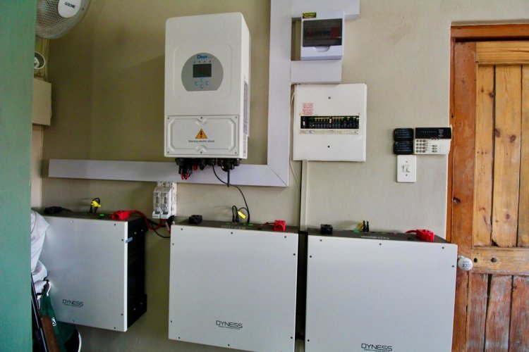 5 kVA inverter, 15.4 kVA batteries, and 8 solar panels, ensuring uninterrupted power supply.