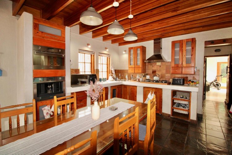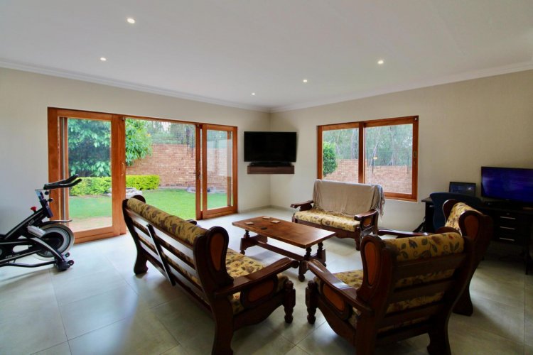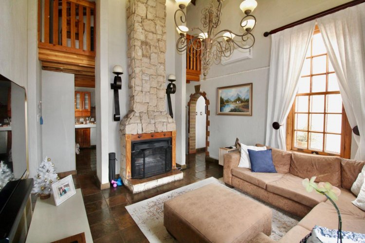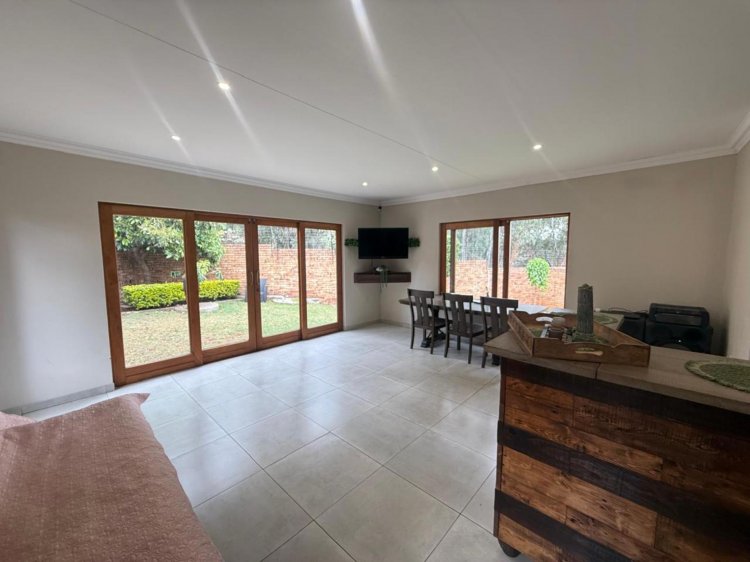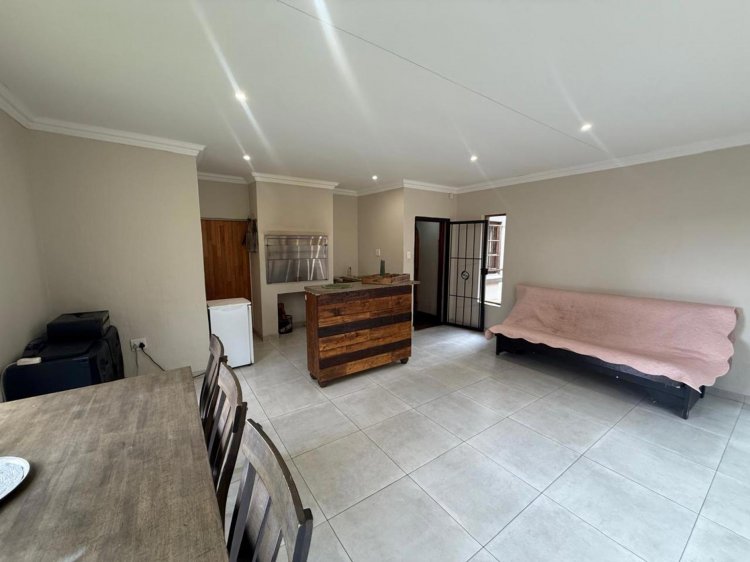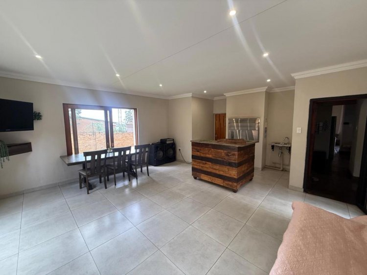 Inside, the home boasts four spacious bedrooms, including a main bedroom with en suite bathroom, and an additional full bathroom for the remaining bedrooms. Generous living spaces flow effortlessly from the inviting lounge to the entertainment area, which features a built-in braai – ideal for family gatherings and indoor-outdoor living.