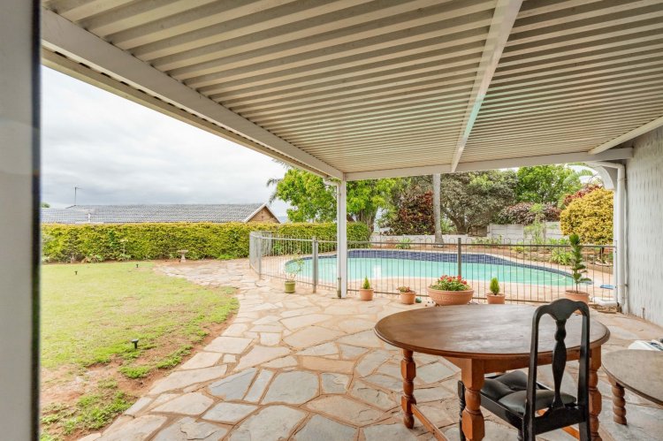 The living area opens onto a tranquil undercover patio, overlooking a large sparkling pool — an ideal setting for year-round enjoyment. The spacious Kitchen is equipped with a gas hob and granite tops, ample cabinetry and separate laundry area.