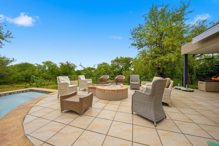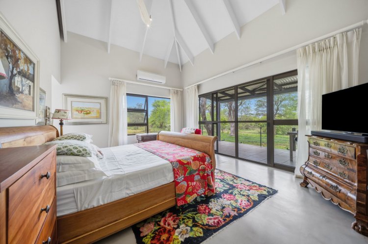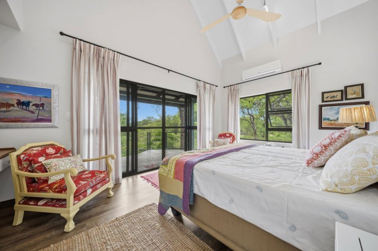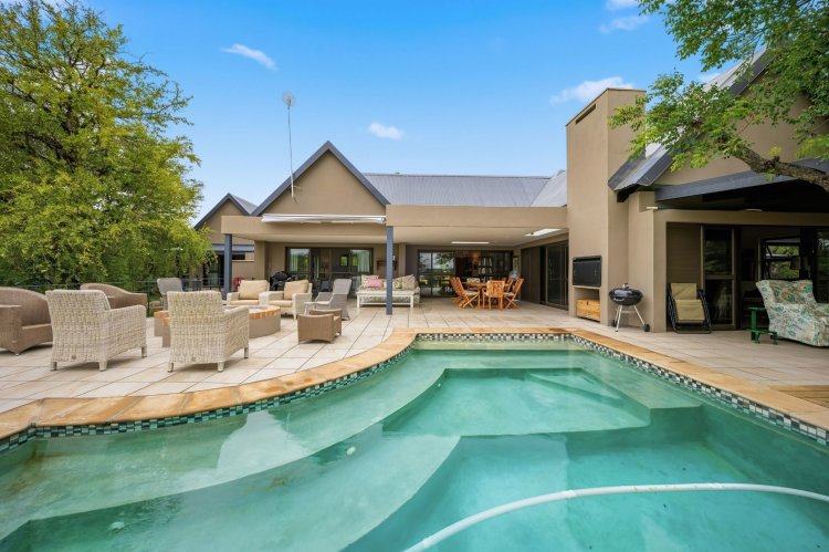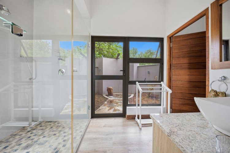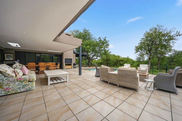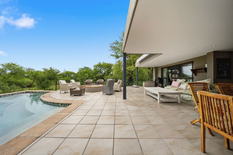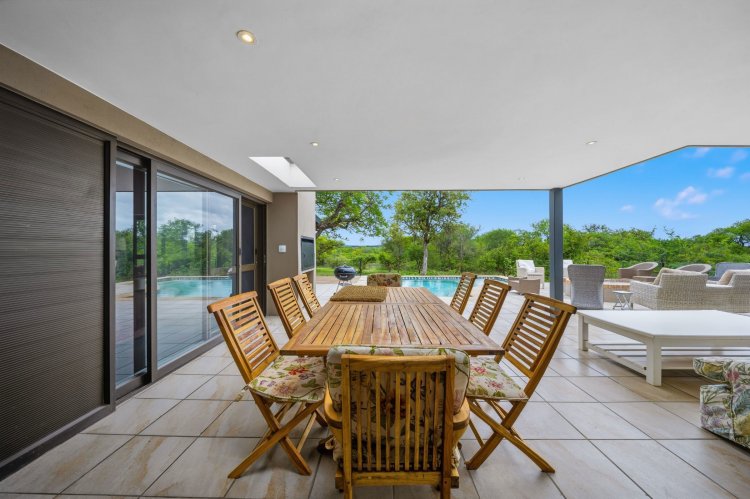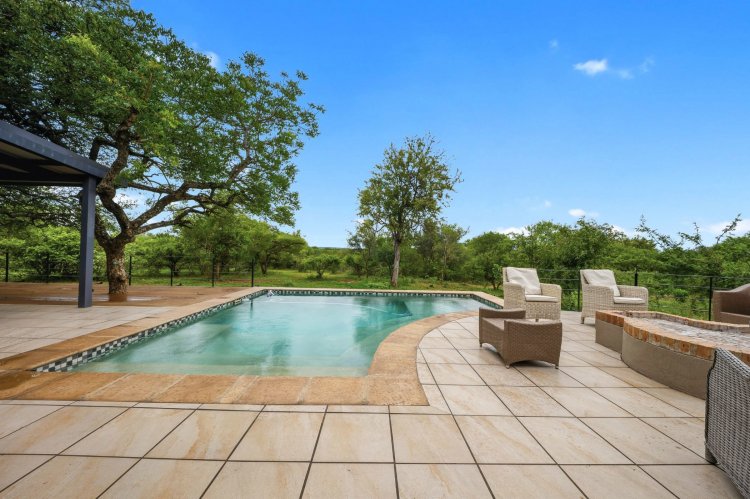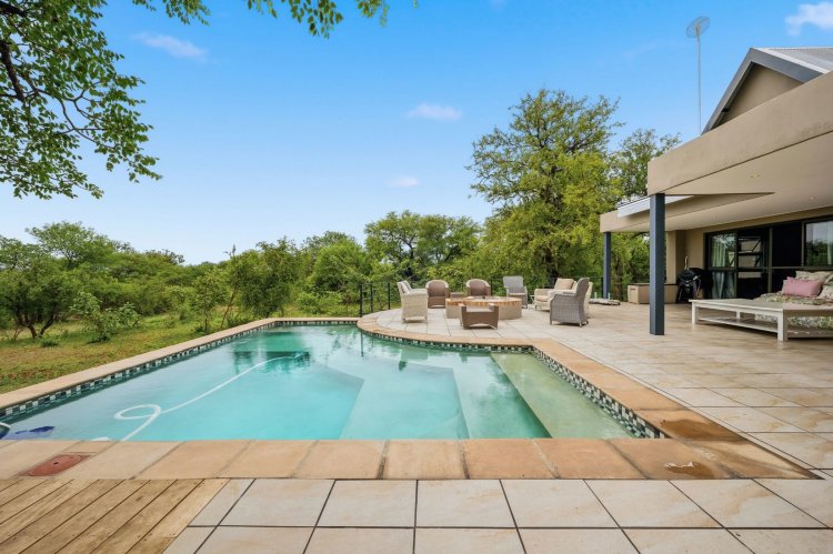 Perfectly located on a ridge with sweeping panoramic views across the untamed bushveld and the majestic Drakensberg mountains, this exceptional residence is a rare offering within the exclusive Leadwood Big Game Estate. Surrounded by the Rietspruit Big Game Conservancy, the home delivers an unrivalled blend of privacy, luxury, and immersive wilderness living. Designed to embrace its natural surroundings, the home features four generously sized bedrooms, each with a luxurious en-suite bathroom and breathtaking views. Two master suites are positioned off the main living area, both opening onto private verandas ideal for quiet, al fresco moments. One suite boasts a freestanding bathtub overlooking the bushveld, while the other offers a refined indoor–outdoor shower experience. The remaining two bedrooms, accessed via a beautifully landscaped courtyard, mirror this level of comfort and feature elegant outdoor showers that connect you directly with nature. At the heart of the home, the open plan living area flows effortlessly between the contemporary kitchen, dining space, lounge and outdoor entertainment area. Retractable aluminum doors open fully onto a spacious patio, revealing a sparkling swimming pool and a built-in firepit, ideal for entertaining under African skies. A separate scullery and laundry ensure functionality without compromising aesthetics. The tranquil central courtyard, adorned with lush gardens, enhances the sense of seclusion and serenity, while additional features include a guest toilet, staff bathroom, water softening system, double automated garage, and a double carport suitable for a game viewer vehicle. The solar system – 16KVA Inverter, 2 x 20 KVA batteries and 30 solar panels. Homeowners also enjoy access to dedicated traversing areas within the estate. This property is far more than a residence—it is a lifestyle choice for those who value exclusivity, space, and an authentic connection to the wild. About the Estate Leadwood Big Game Estate is an exclusive, low-density reserve spanning 980 hectares, comprising just 94 one-hectare stands. As part of the 5,500-hectare Rietspruit Conservancy, the estate is home to an extraordinary variety of wildlife, including elephant, lion, leopard, cheetah, and an abundance of plains game. Residents enjoy game viewing along established drive trails within the estate itself. The estate is meticulously managed to preserve biodiversity while offering modern infrastructure such as 24-hour security, borehole water, underground electricity, and waste services. Ideally located just minutes from Hoedspruit, with easy access to Eastgate Airport (several daily flights to and from Johannesburg and Cape Town) and the Kruger National Park. Leadwood is widely regarded as one of the most sought-after wildlife estates in South Africa. An exceptional opportunity to live where luxury meets the wild.