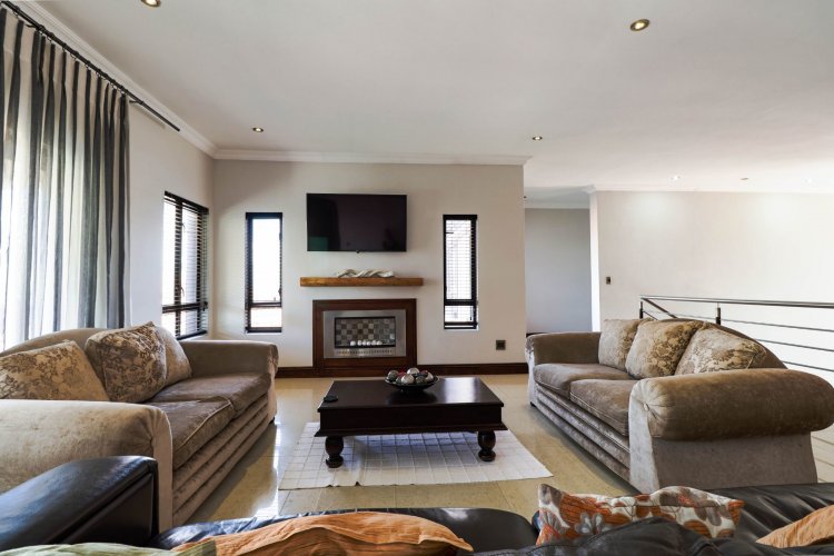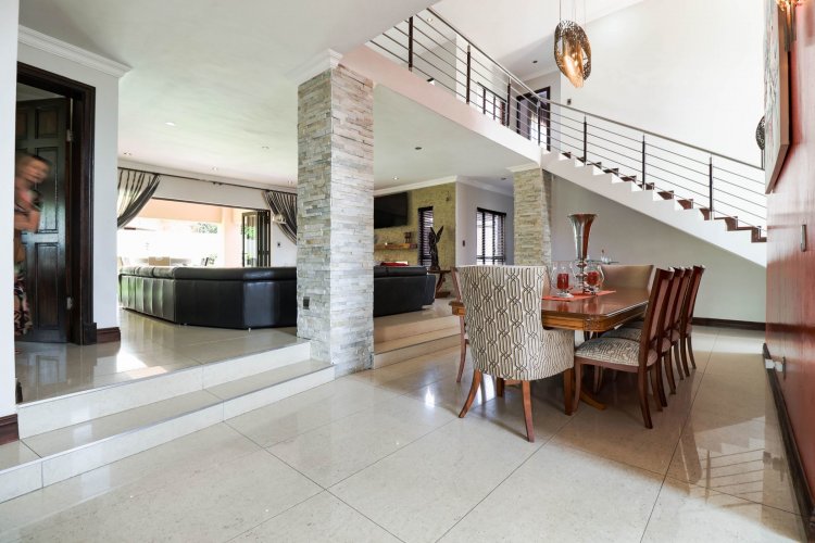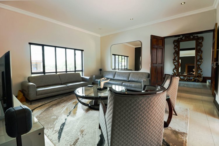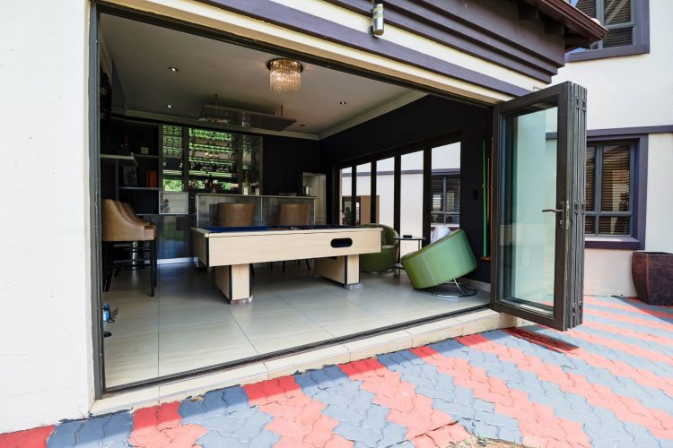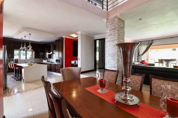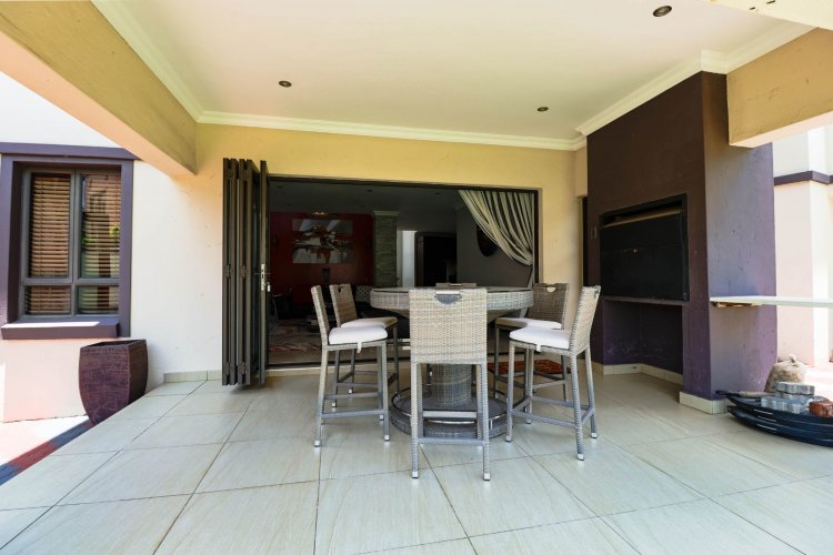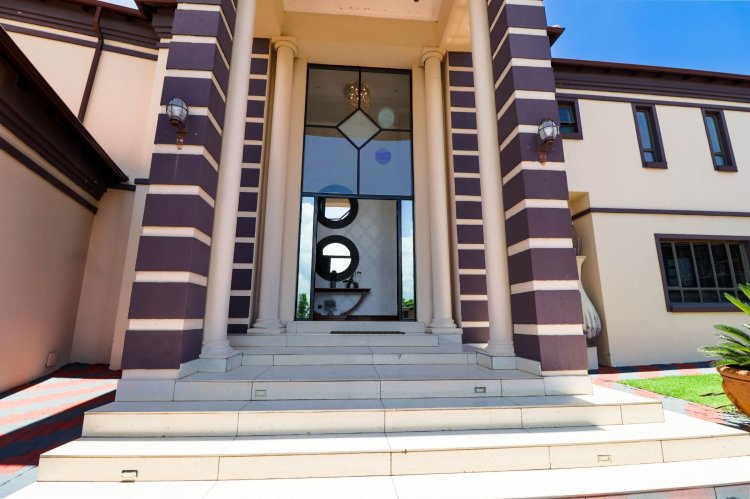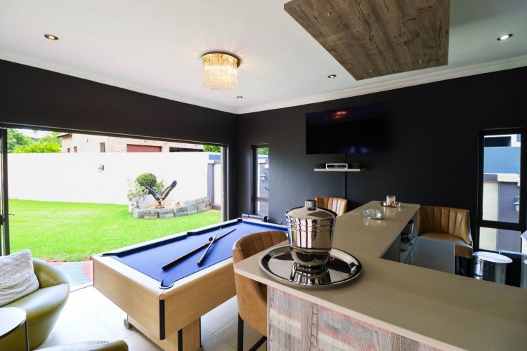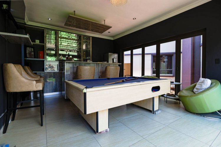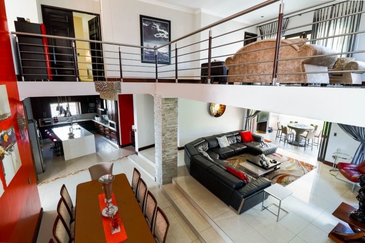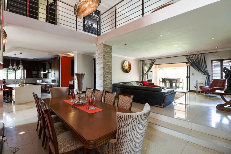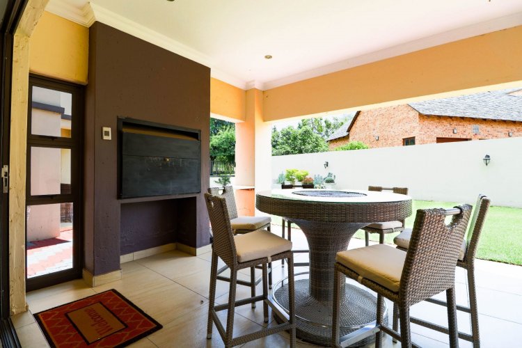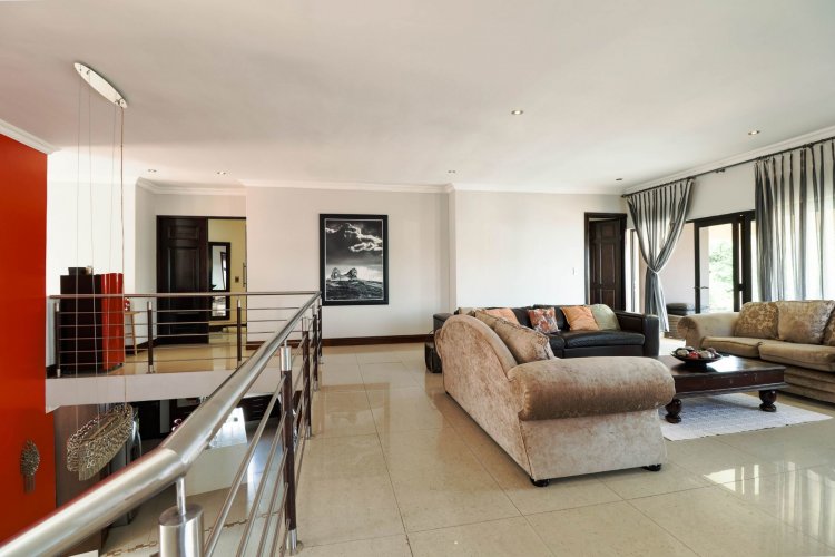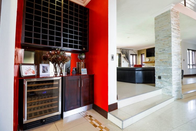Downstairs Impressive double volume entrance hall Kitchen & Scullery Formal lounge TV lounge Dining Room Private Guest Suite with Full Ensuite Bathroom & doors to private patio Guest Cloakroom Outside Patio with Built-in Braai Separate Outside Enclosed Patio/Bar