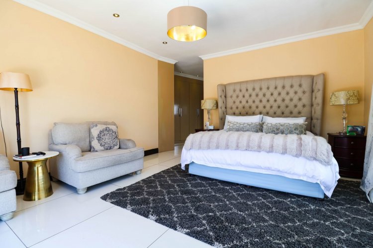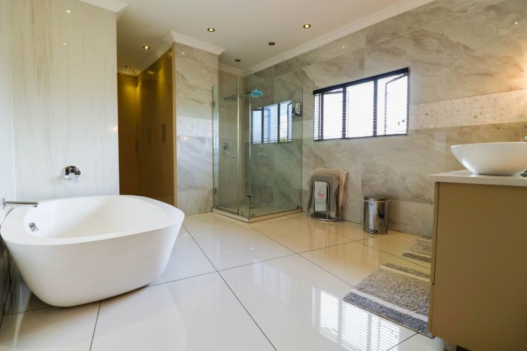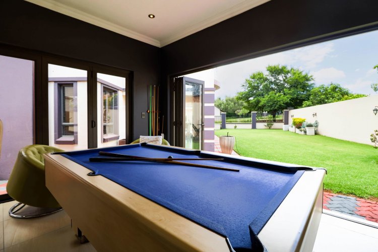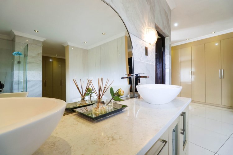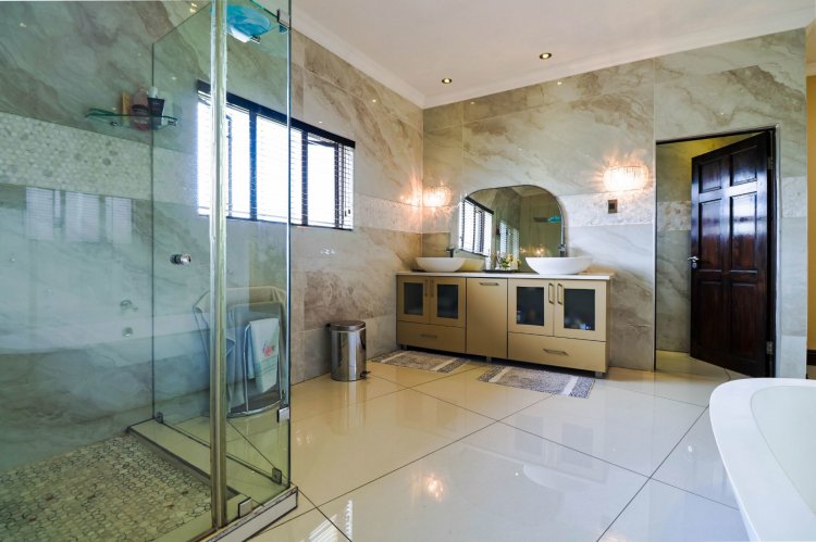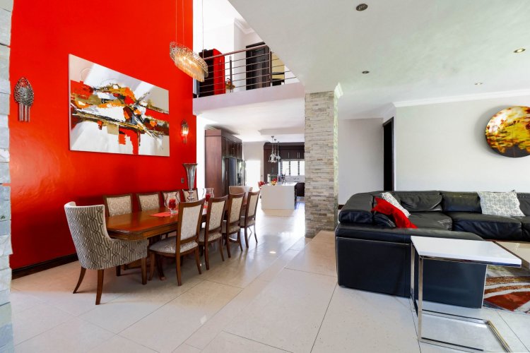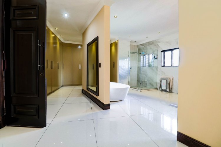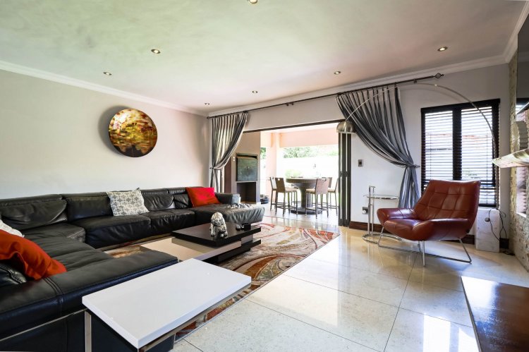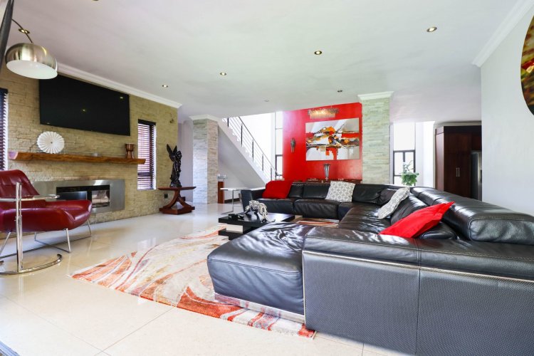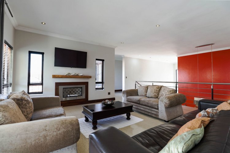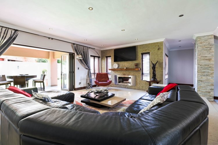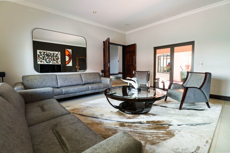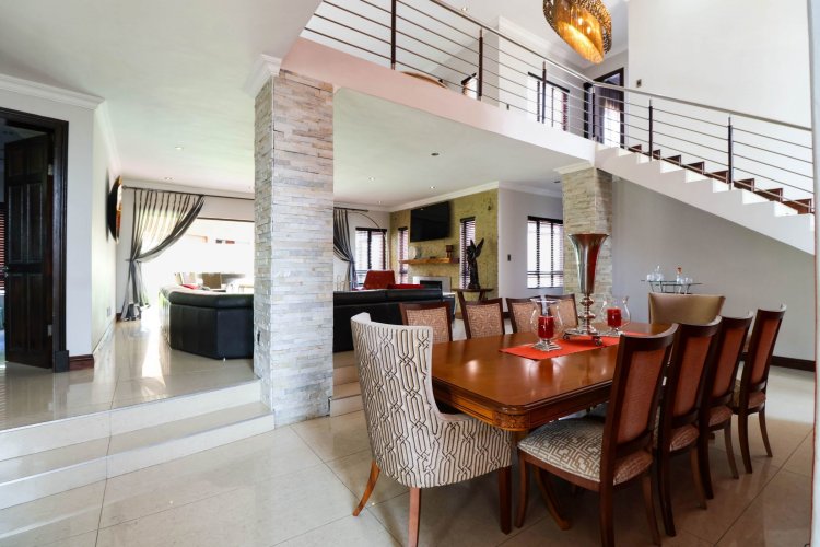 Downstairs Impressive double volume entrance hall Kitchen & Scullery Formal lounge TV lounge Dining Room Private Guest Suite with Full Ensuite Bathroom & doors to private patio Guest Cloakroom Outside Patio with Built-in Braai Separate Outside Enclosed Patio/Bar