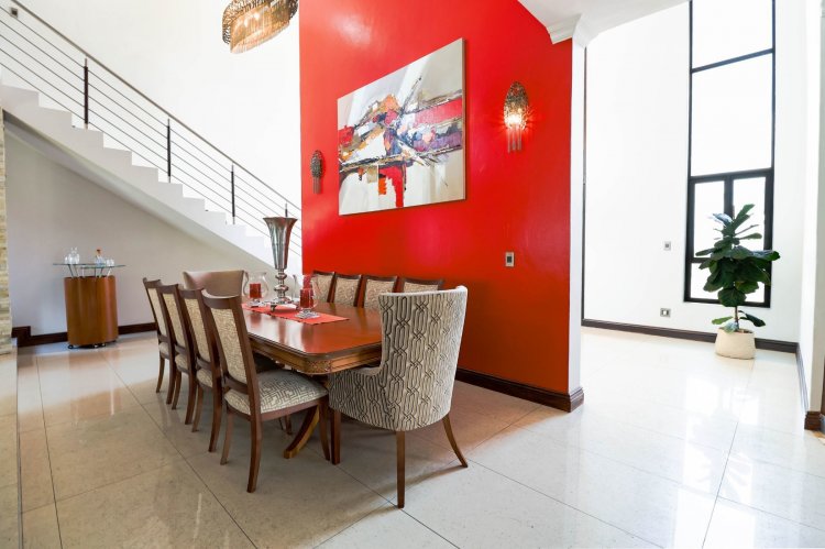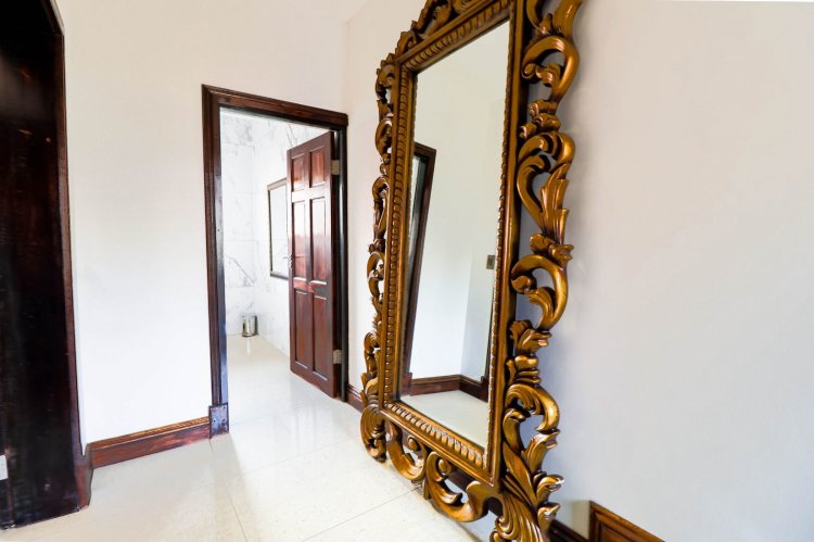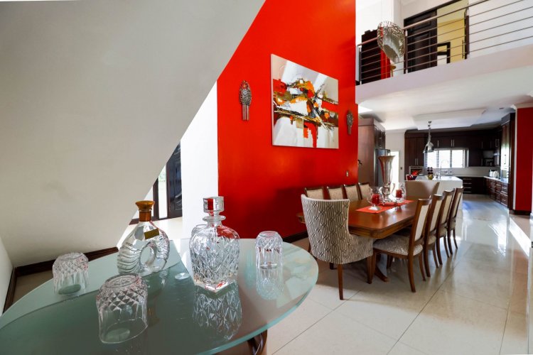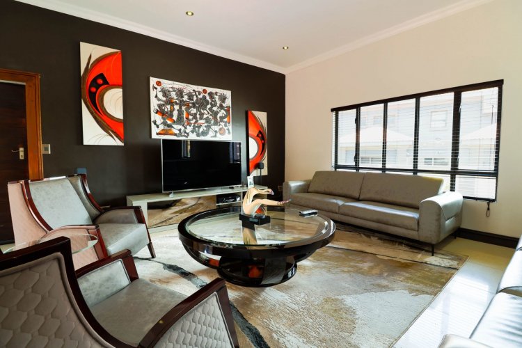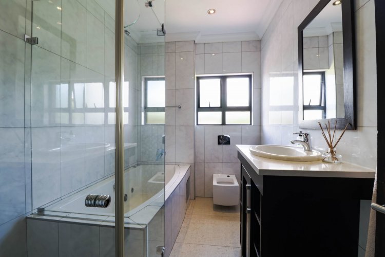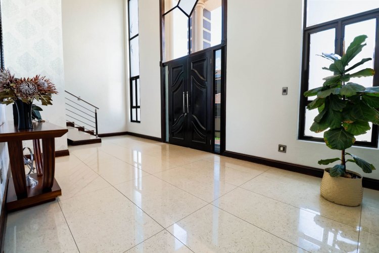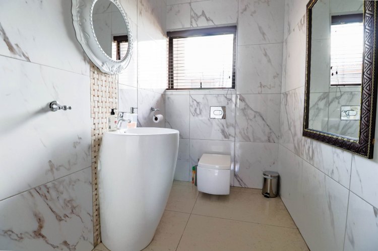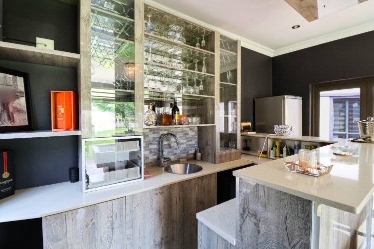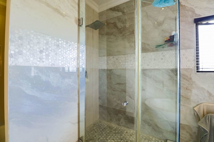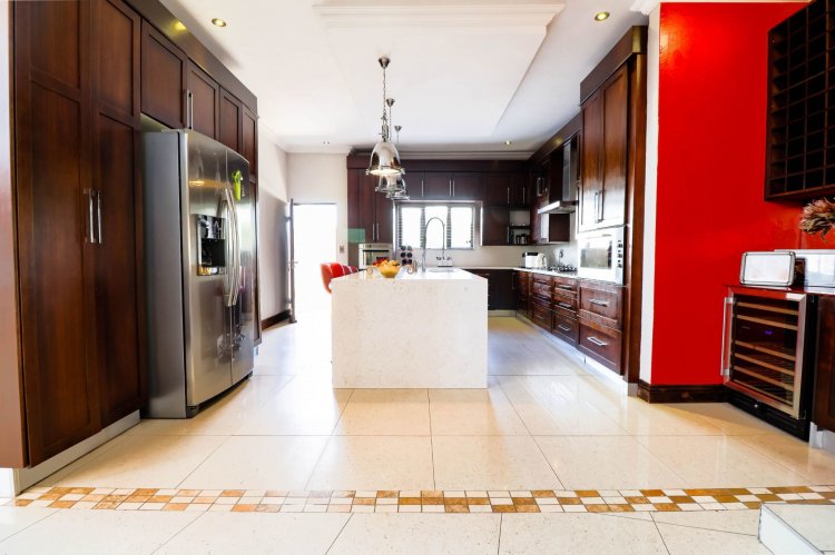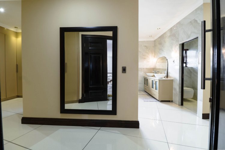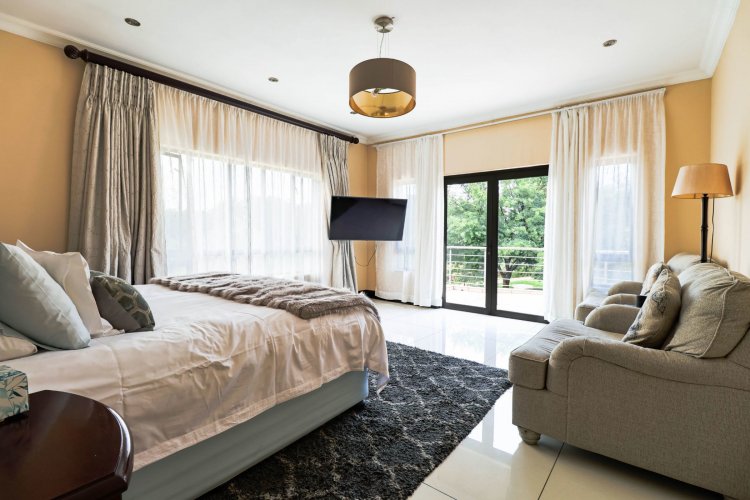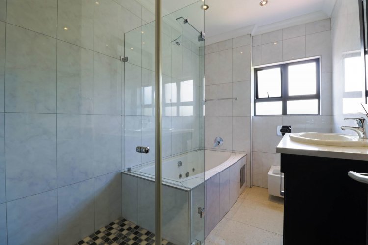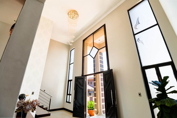 Downstairs Impressive double volume entrance hall Kitchen & Scullery Formal lounge TV lounge Dining Room Private Guest Suite with Full Ensuite Bathroom & doors to private patio Guest Cloakroom Outside Patio with Built-in Braai Separate Outside Enclosed Patio/Bar