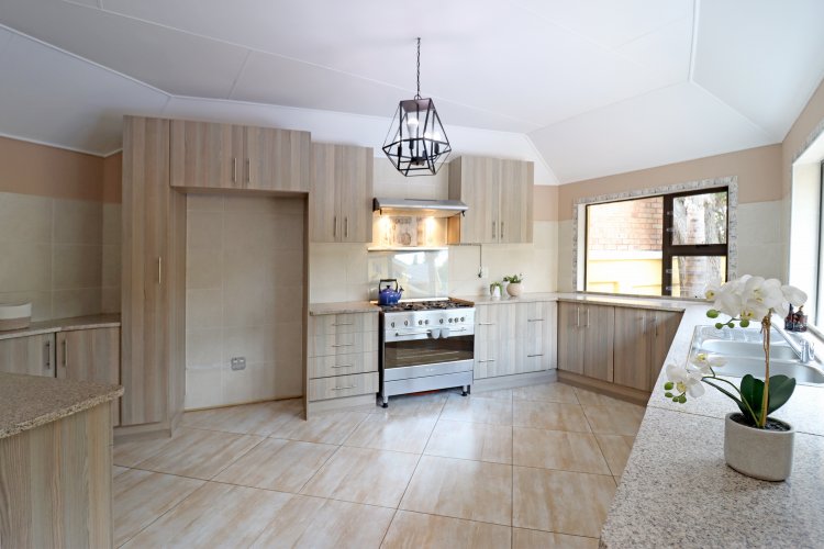 Extras: Air conditioners; pre-paid electricity meter; free standing gas stoves in kitchens; 2 x Jojo water back-up tanks, jungle gym with pool slide: additional braai area; covered carports for 4-5 vehicles + excellent security!