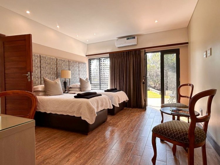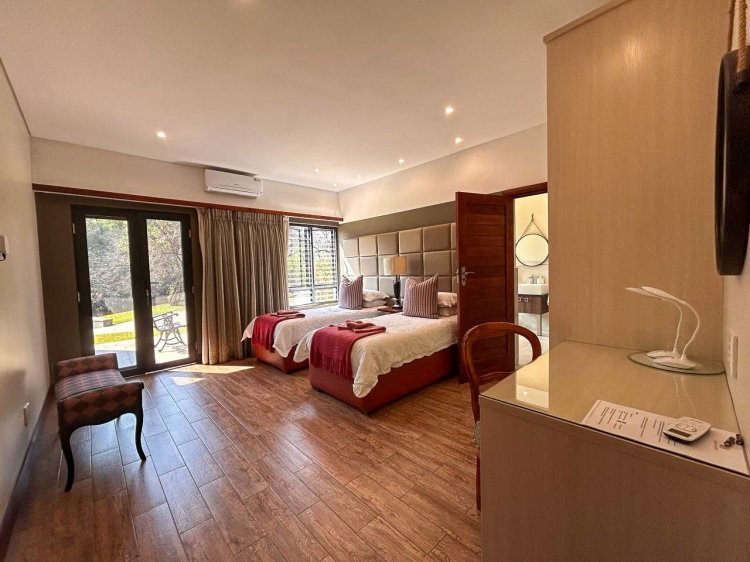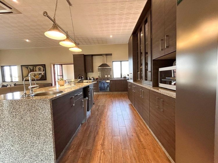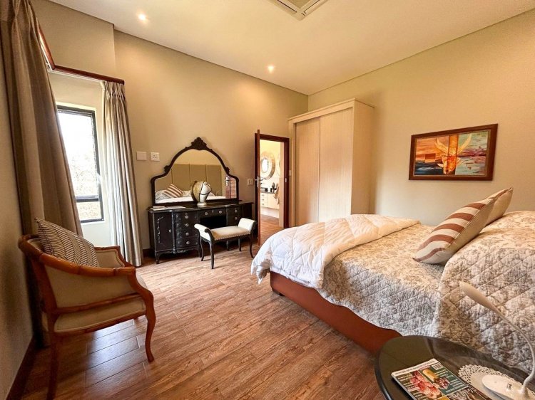 Peace of mind comes standard with this property. A solar system ensures energy efficiency and protection against load shedding, while a back-up water system with pressure pump guarantees uninterrupted water supply. Four garages provide ample space for vehicles, golf carts, or extra storage.