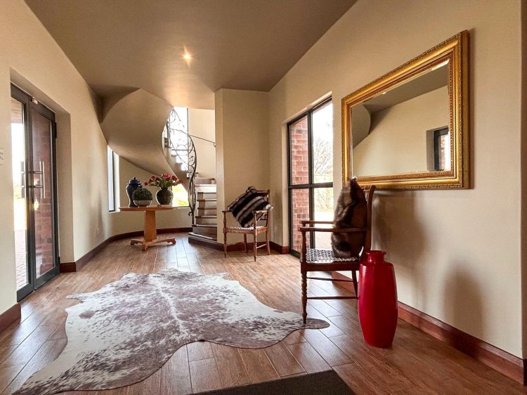 Dual mandate. Step into a world of space, light, and modern elegance in this beautifully designed double-storey home, perfectly positioned in the sought-after Parys Golf & Country Estate. From the moment you enter the welcoming entrance hall, you are drawn upward by the graceful spiral staircase that sets the tone for the home’s stylish character.