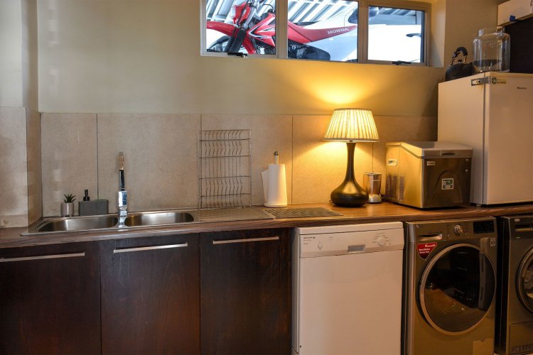 This hybrid home is environmentally conscious and completely off the grid, equipped with six solar panels, backup water tanks, a gas geyser, and a gas stove, offering both efficiency and peace of mind.