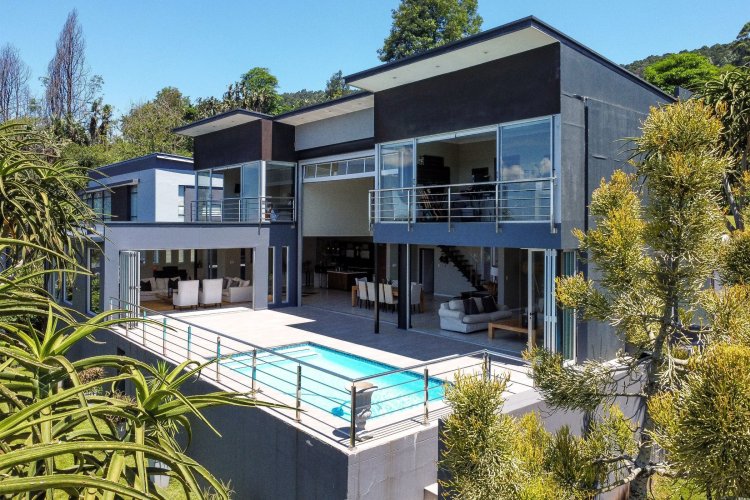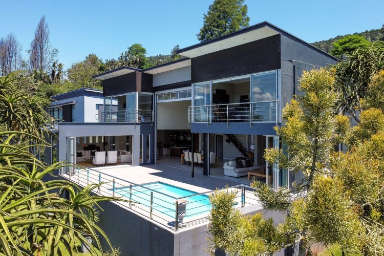 Designed as an entertainer's dream, the home features seamless open plan indoor-outdoor living, flooded with natural light and framed by incredible outlooks. Downstairs offers 2 spacious lounges, a dining area, and a well-appointed kitchen with separate scullery, all flowing effortlessly to the pool area. A guest toilet adds convenience on this level.