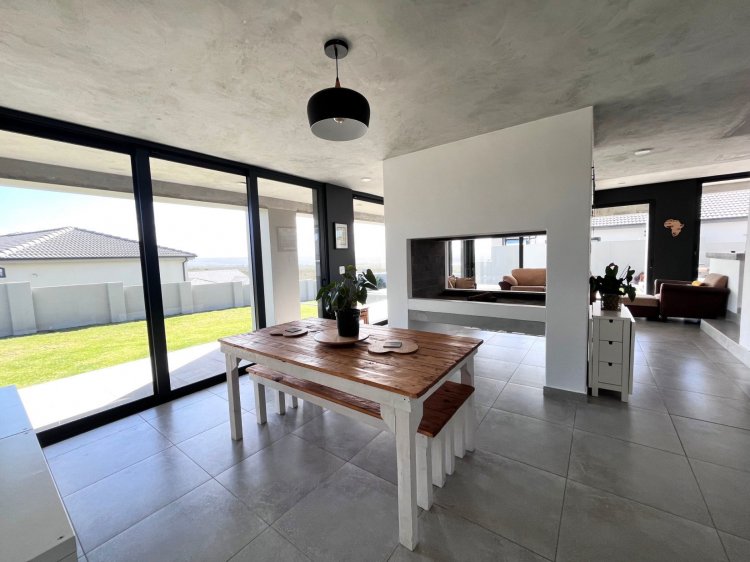 Sliding doors lead from the living area to a veranda, where you can bask in the beauty of the surrounding landscape. The outside braai area is perfect for hosting barbecues and outdoor gatherings, while the courtyard provides a tranquil space for relaxation. The splash pool is a refreshing oasis on hot summer days, offering a place to unwind while taking in the panoramic views of the mountains and sunsets.