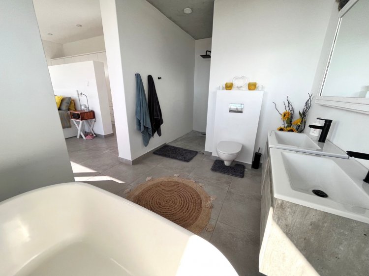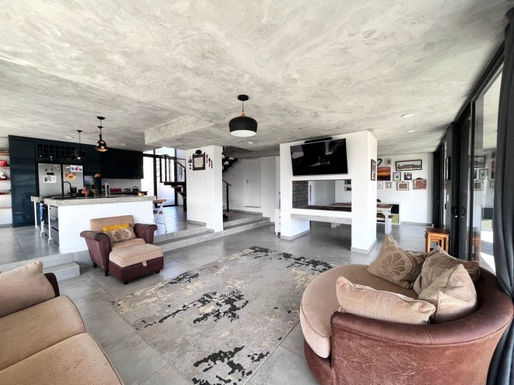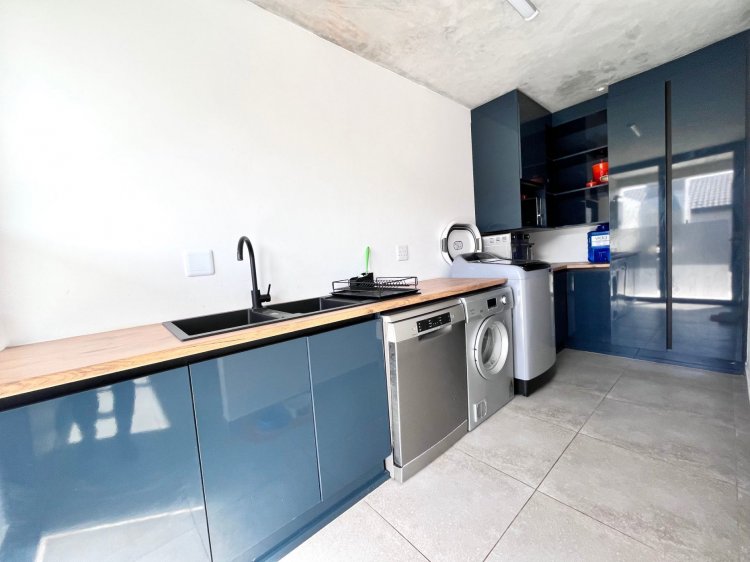 The open-plan living, dining, and kitchen area is the heart of the home, boasting high ceilings and sleek modern finishes. The cosy fireplace adds a touch of comfort and charm, perfect for cosy evenings spent with loved ones. The kitchen is a chef's delight, with top-of-the-line appliances, ample counter space, and a separate scullery for added convenience. Whether you're preparing a gourmet meal or simply enjoying a cup of coffee at the breakfast bar, this space is sure to inspire your inner culinary artist.