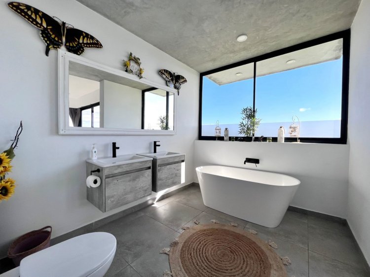 The four generous bedrooms are all elegantly appointed, with the master suite featuring a luxurious en-suite bathroom and ample closet space. The additional bathrooms are placed for convenience, ensuring that every member of the household has their own private sanctuary. For guests seeking privacy, the separate guest bedroom and bathroom on the ground level offer a peaceful retreat away from the main living areas.