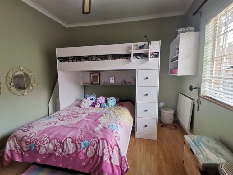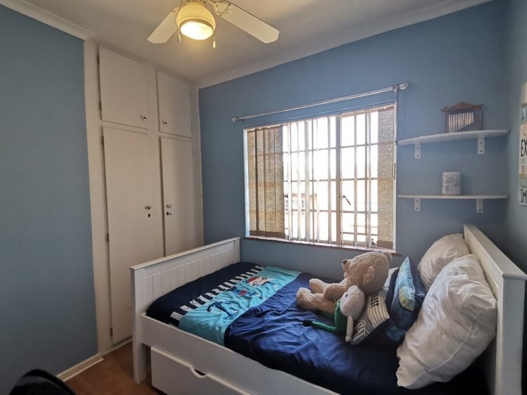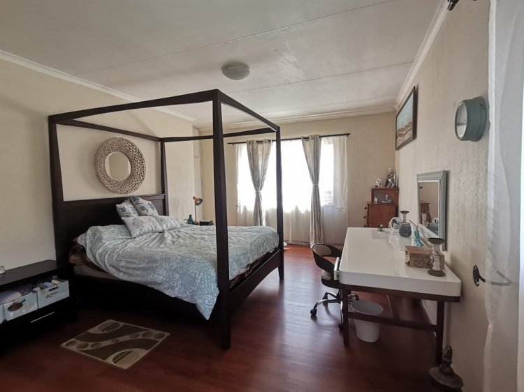 Ground floor offers a spacious open plan kitchen, dining and lounge leading to a bedroom with built-in cupboards and a bathroom. Upstairs offers 3 well sized laminated floor bedrooms with built –in cupboards. The main bedroom has a en-suite and a walk-in wardrobe. The third bathroom serves the other 2 bedrooms.