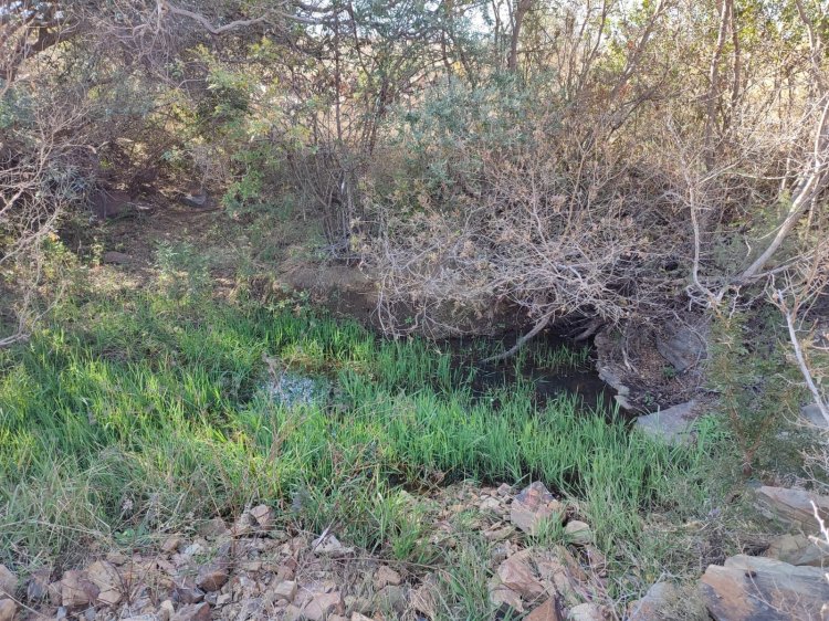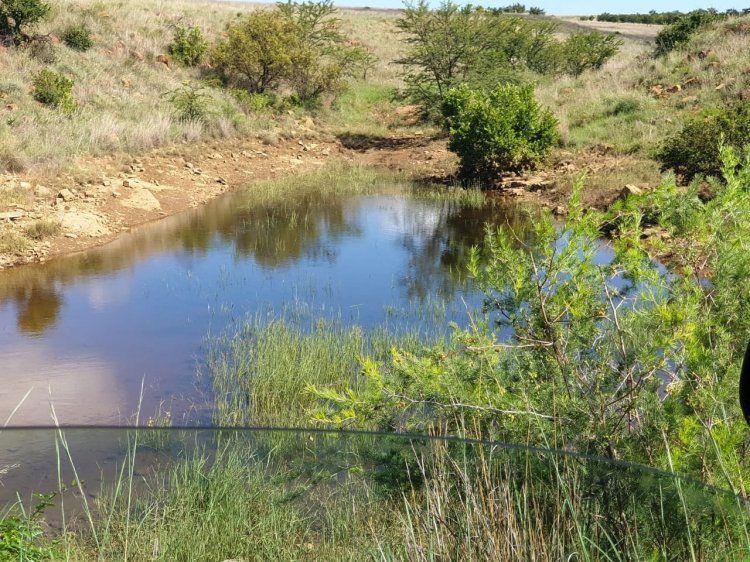 Water is supplied by 3 boreholes (only one currently equipped with a windmill), 6 water cribs, 2 soil dams (seasonal, filling during the rainy season), and a stream fed by a fountain from a neighbouring farm. The strongest borehole, though not equipped, lies conveniently close to a cement dam in need of lining, offering an opportunity for reliable future water storage.