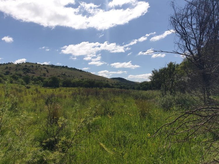 Access is via a servitude road, making it a true inside farm with privacy and uninterrupted views of the surrounding countryside. The property is fully cattle-fenced and features approximately 120 hectares of arable land ("oulande"), divided into 20 hectares of grassland and 100 hectares of grassland, ideal for rotational farming or fodder production.