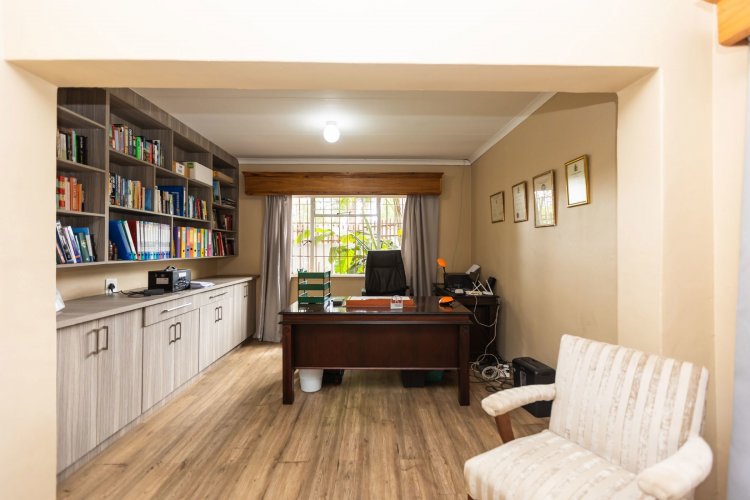 Be welcomed at the spacious entrance hall which leads to an enormous study area complete with built in cupboards and shelves and luxury flooring or turn into a small foyer that branches out to the modern, bright kitchen, styled for an avid foodie, complete with gas hob and plenty of storage enhanced by granite tops.