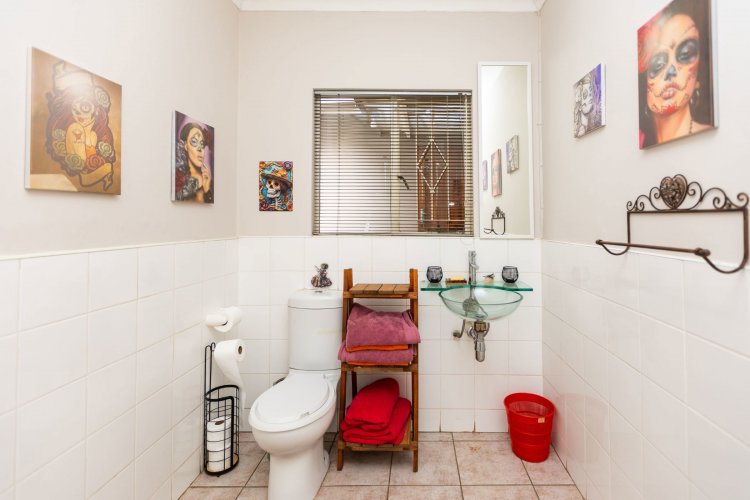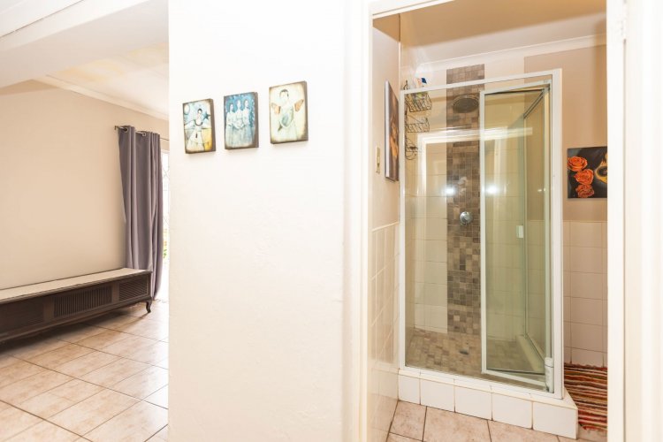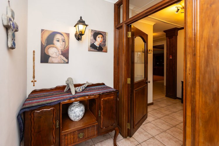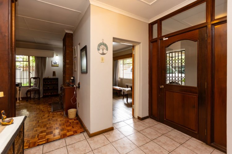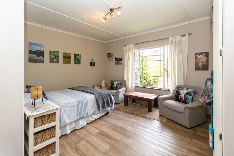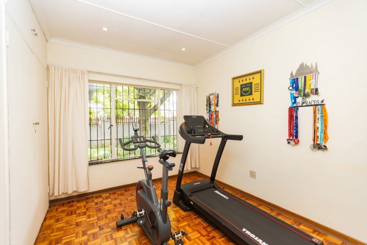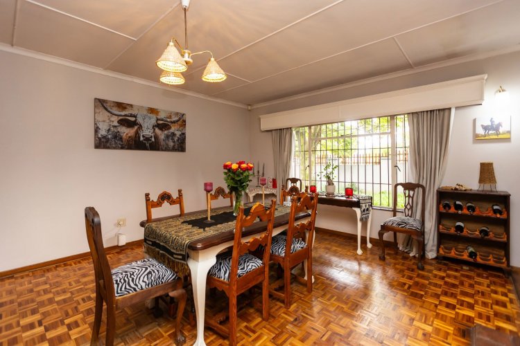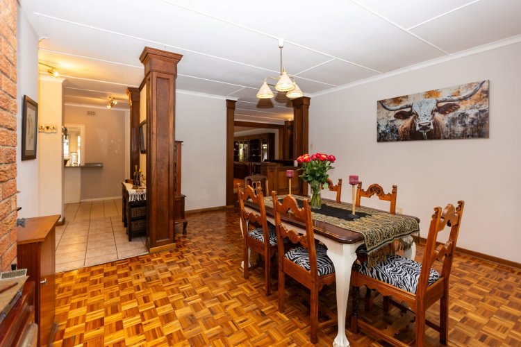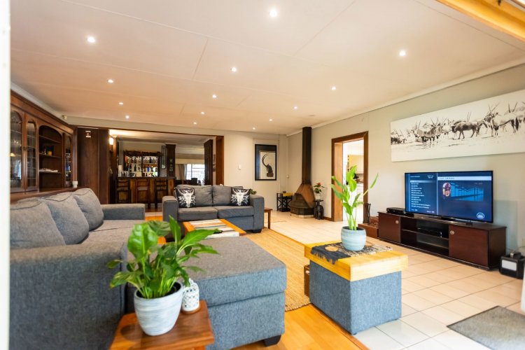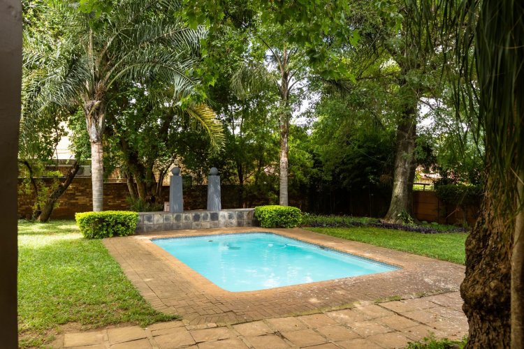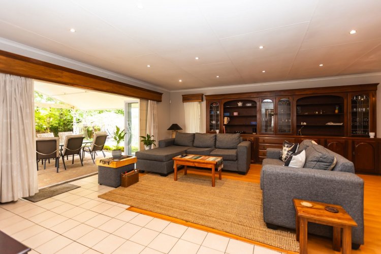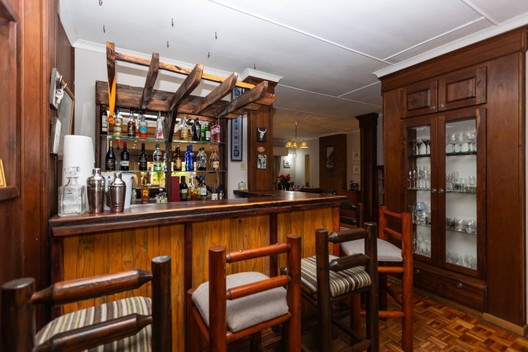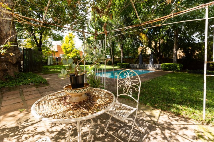 Follow an interesting journey through the charming dining room with immaculate parque flooring and fireplace towards the enormous living area. This space is for the entertainer! A magnificent built in unit stands as a feature, grounding the space which also boasts a wood burning fireplace, a built in bar and stacking doors to a large undercover patio with a built in braai. The stacking doors, when open, allows the outside to blend with the interior. Both the living area and patio have a gorgeous view of the back garden with a heated swimming pool and lush vegetation, perfectly private and tranquil. This can be further enjoyed from the garden pergola, the perfect spot for summer dinners.