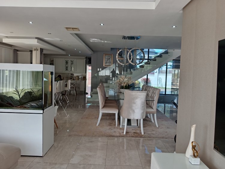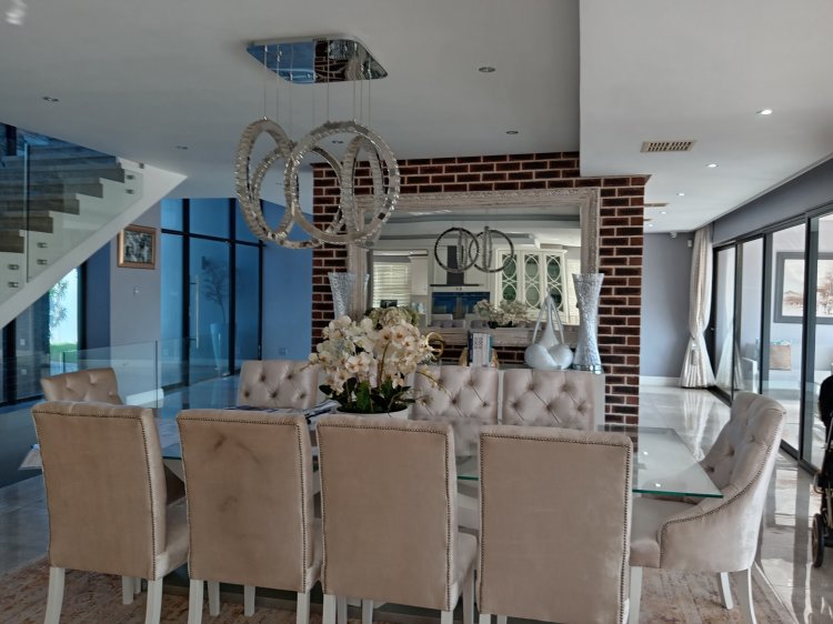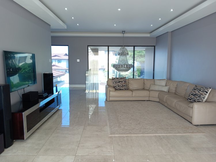 Experience the pinnacle of luxury living in this magnificent three-level residence, perfectly positioned in the serene and sought-after suburb of Sheffield Beach. Designed with grandeur and sophistication, this home offers an unrivalled blend of lifestyle, comfort, and security. Key Features • Bedrooms & Bathrooms: 6 spacious bedrooms, 6.5 bathrooms, including 4 lavish en-suites. • Living Spaces: 4 elegant lounges and a welcoming entrance hall, ideal for both family living and entertaining. • Entertainment Excellence: • Enclosed entertainment area with a built-in braai. • Fully fledged bar for hosting in style. • Home theatre on the lower ground floor for cinematic experiences. • Built-in fish tank, adding a unique touch of tranquillity. • Kitchens & Utility: 2 modern kitchens complemented by a scullery for seamless functionality. • Additional Spaces: Dedicated office space for work-from-home convenience. • Luxury Comforts: Fireplace for cosy evenings, exotic finishes throughout, and expansive sea views from multiple vantage points. • Outdoor Living: Sparkling pool set against the backdrop of the ocean, perfect for relaxation and entertainment. • Parking & Security: 3-car garage, advanced security with cameras, beams, and monitors ensuring peace of mind. Lifestyle & Location Nestled in a quiet, prestigious neighbourhood, this property offers the perfect balance of privacy and accessibility. The breath-taking sea views and tranquil surroundings create a sanctuary for discerning buyers seeking both opulence and serenity. This home is more than a residence—it is a statement of prestige, designed for those who demand the very best in coastal living.