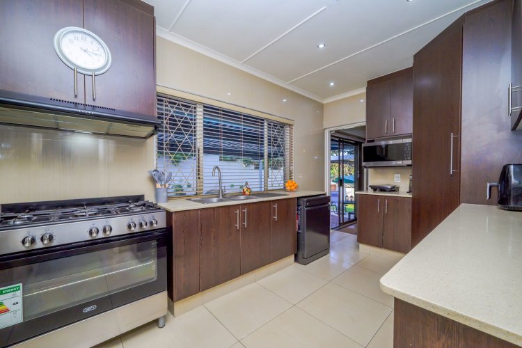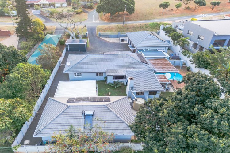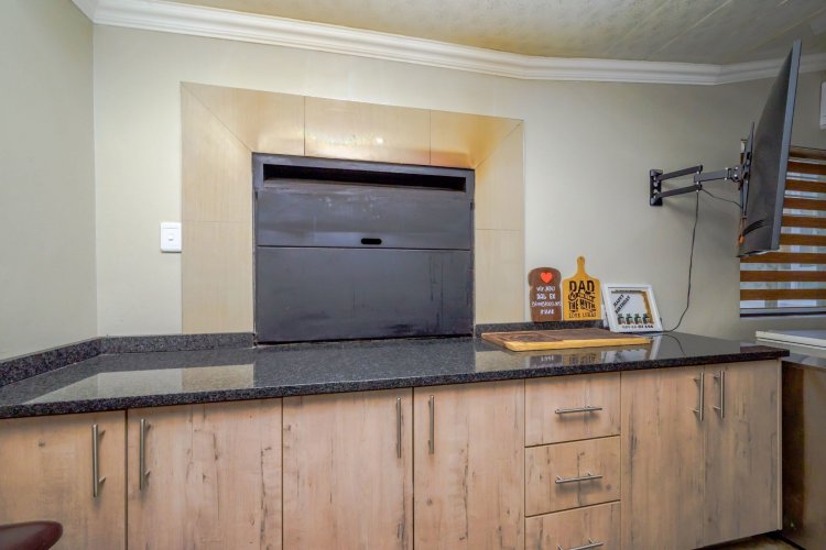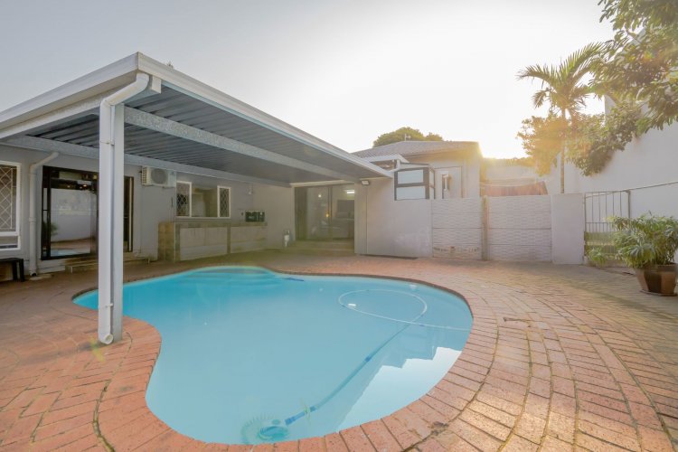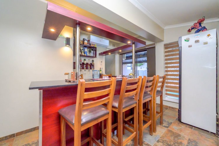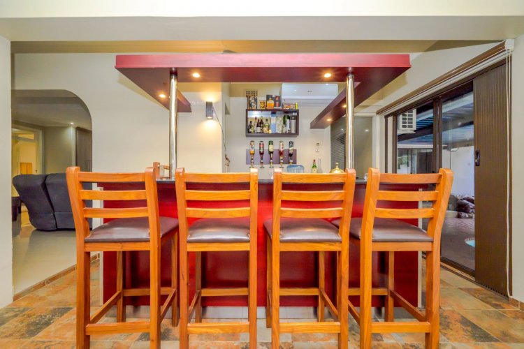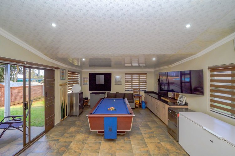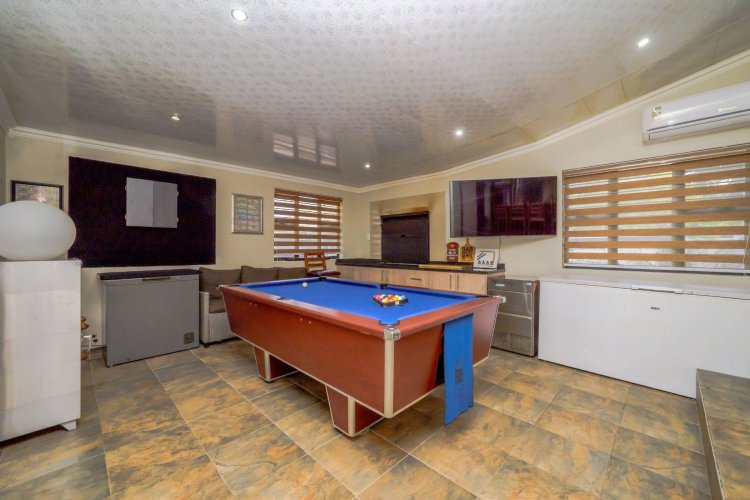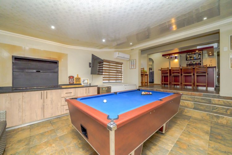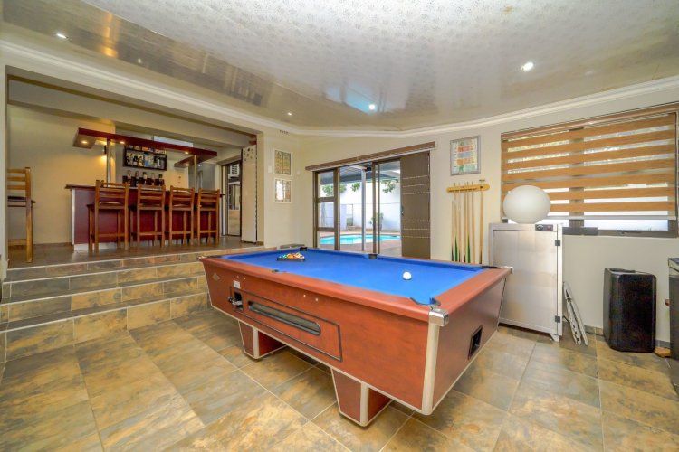 • Indoor entertainment area with bar, space for a snooker table, and covered gas braai – all opening to the pool terrace.