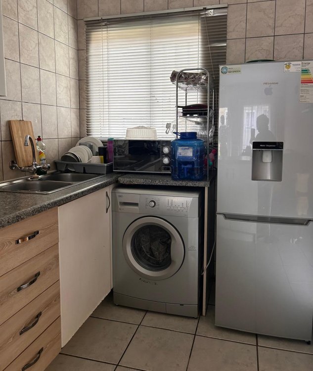 Enjoy the open-plan living area, perfect for relaxed everyday living. The home features 2 spacious bedrooms with built-in cupboards and 1 full bathroom.