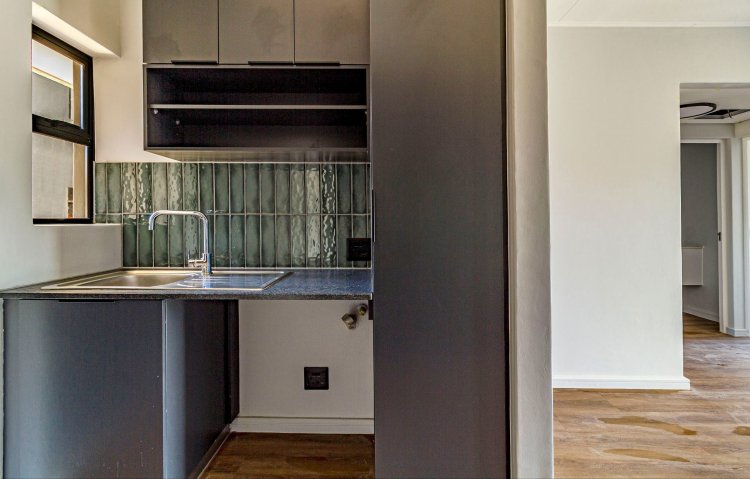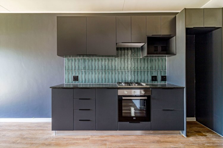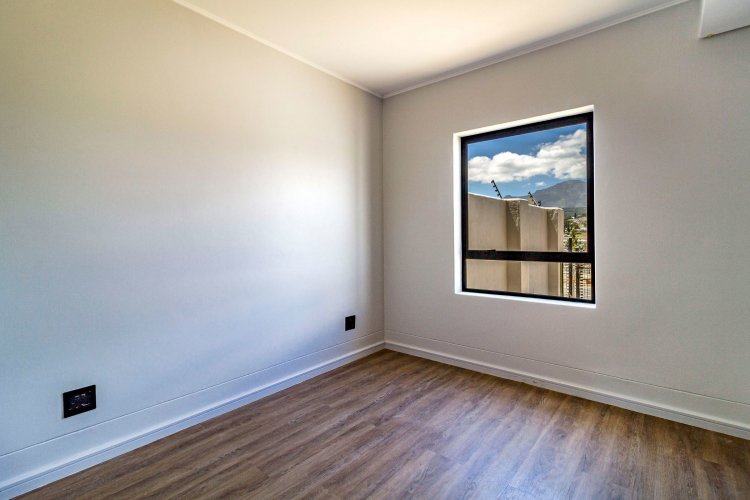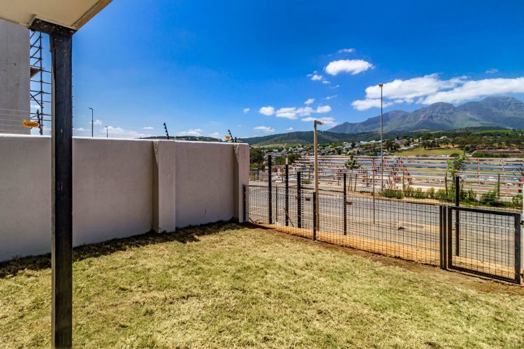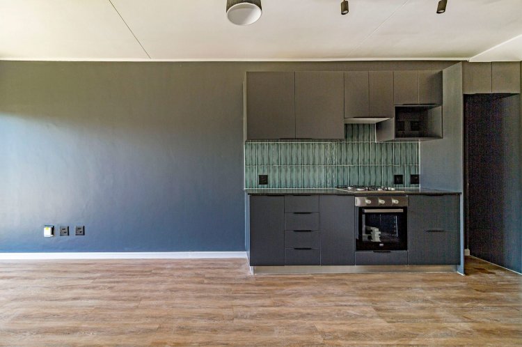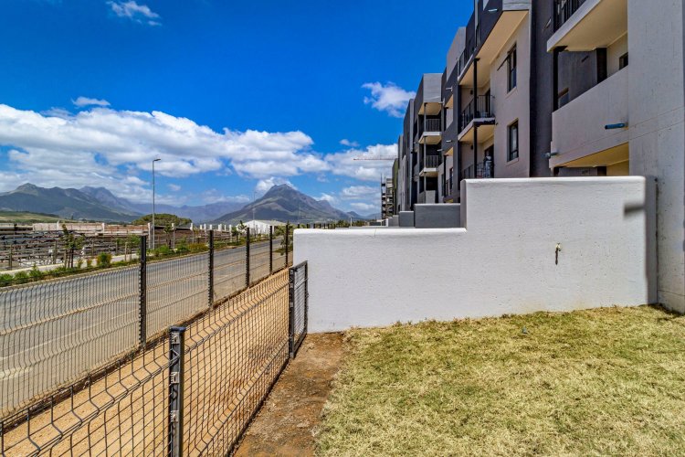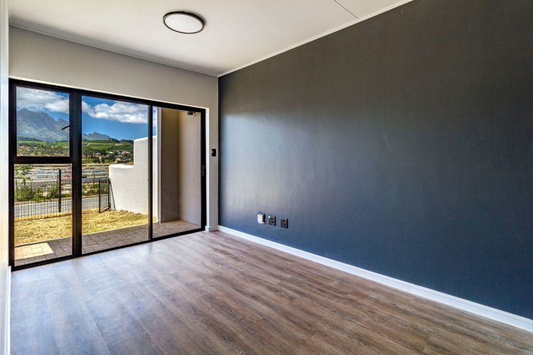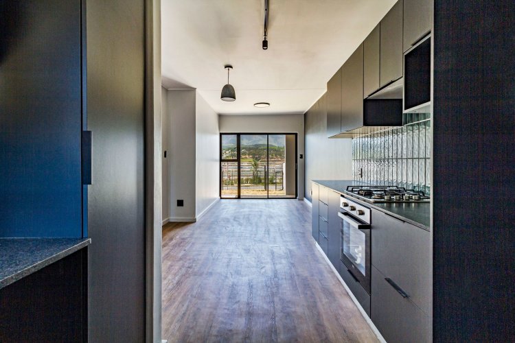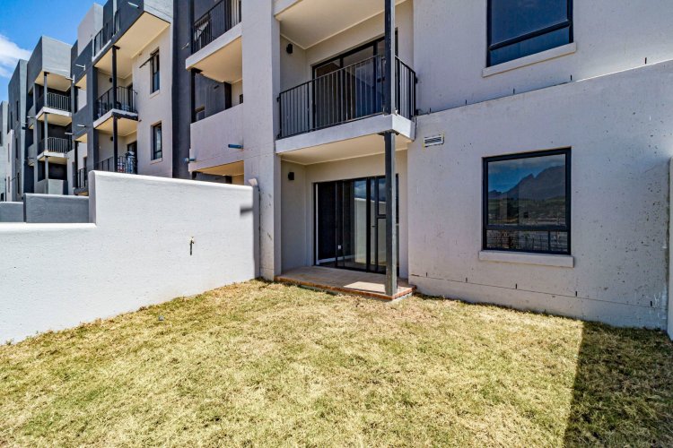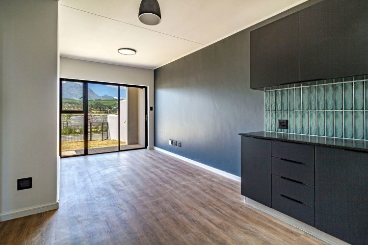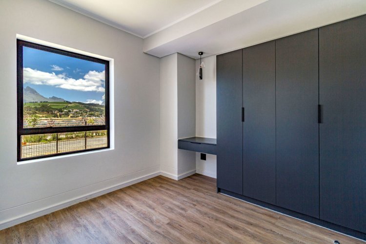 This 2 bed/1 bath, Garden apartment is situated on the ground floor of Block F, facing Simonsberg. Recently completed and move in ready. It comes in the dark interior palette with charcoal cabinetry, bedroom cupboards and vinyl flooring. The garden is planted with grass, ready for you to elevate your garden space with indigenous trees and shrubbery.