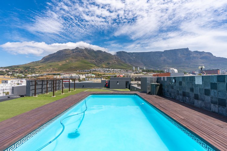 Newly renovated, open-plan contemporary apartment featuring stylish vinyl wooden flooring throughout. Optional Fully Furnished. The modern kitchen includes large stone countertops, a bar nook, and is fitted with an oven, hob, and extractor fan, with ample shelving and cupboard space. The apartment offers a spacious main bedroom with beautiful mountain views, as well as a second bedroom with full-length built-in cupboards. The bathroom is fitted with a bath and shower head. Additional features include: • Undercover parking • Rooftop pool and braai area with panoramic views • Excellent 24-hour security • Well-equipped gym. Laundry Room. • Prime City Centre location with convenient access to business districts, schools, shops, restaurants, and essential services • Easy access to major highways, the Southern Suburbs, Northern Suburbs, and the Atlantic Seaboard