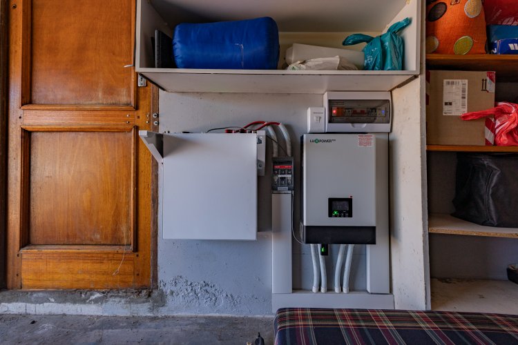Inverter system in the garage, powering the entire house—lights, plugs, TV, air-conditioning, and more