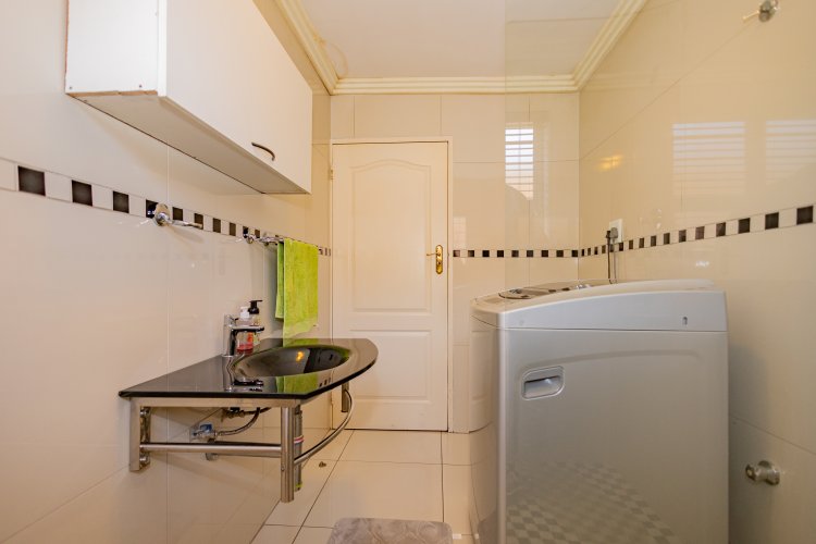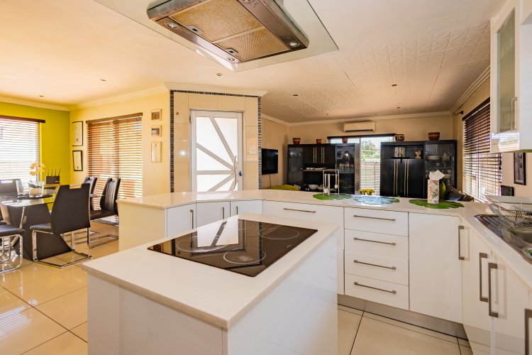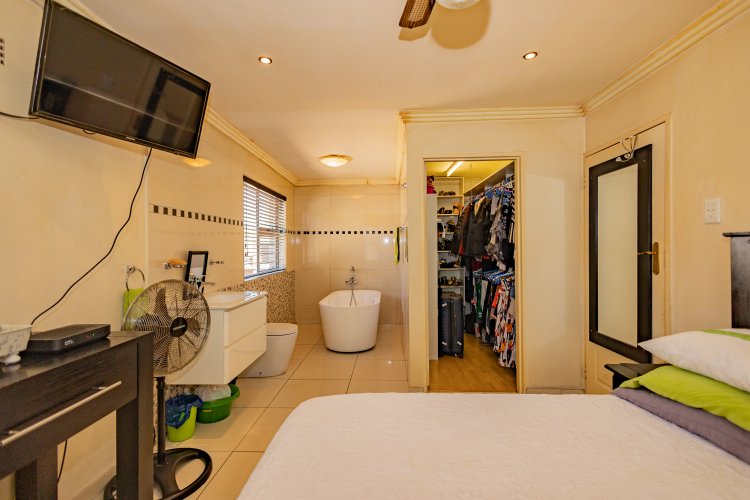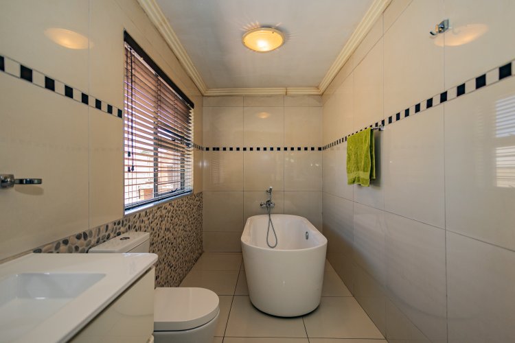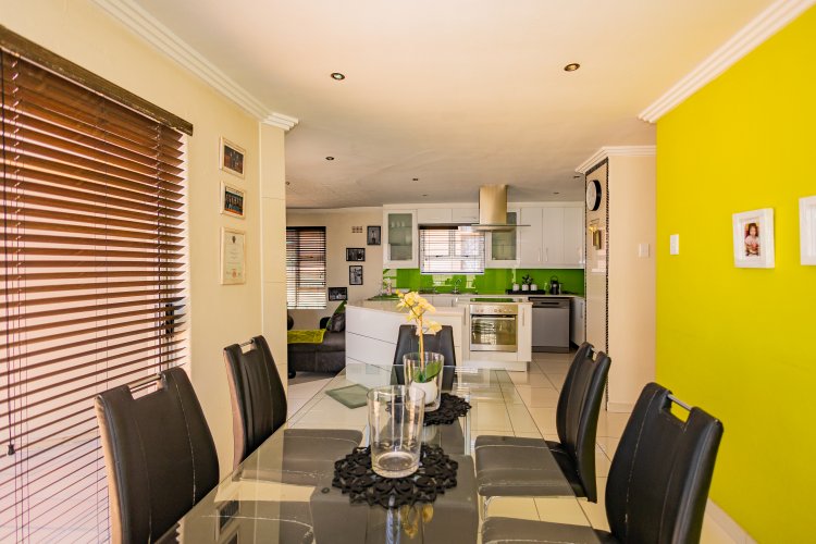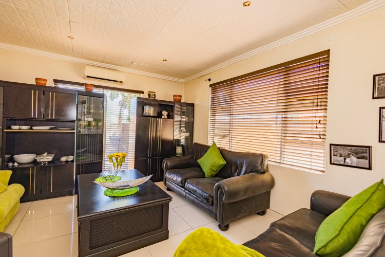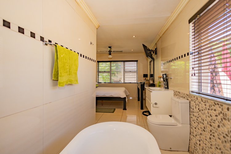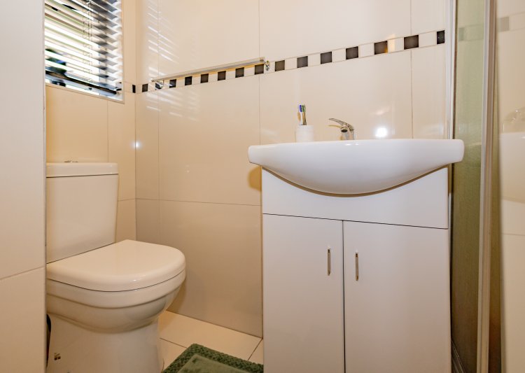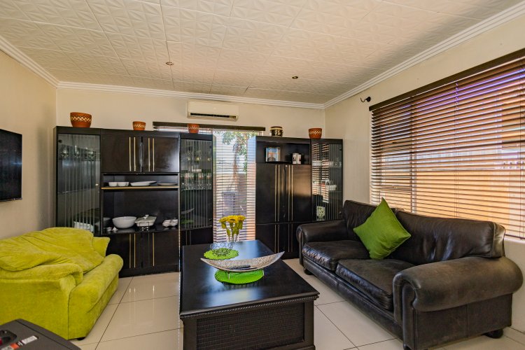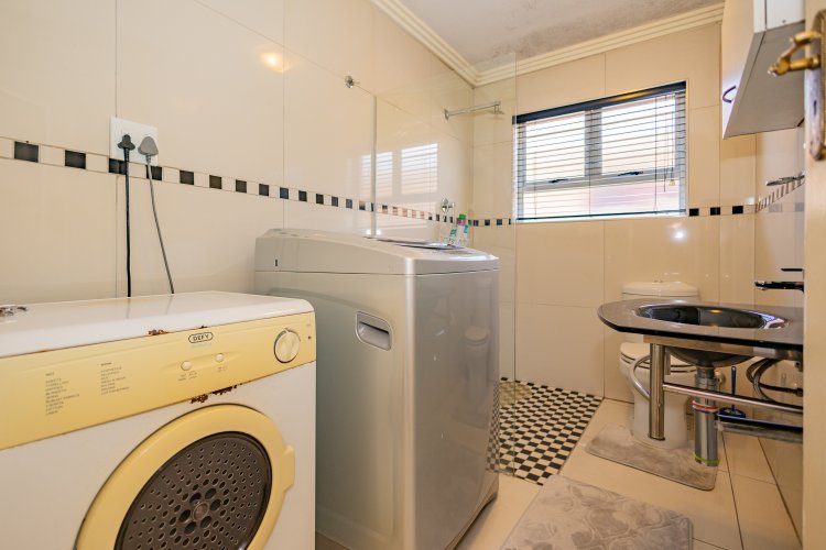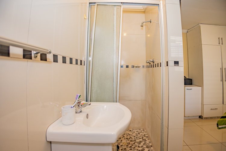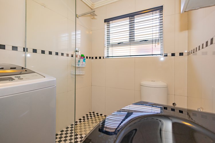 Beautiful Modern Home with Exceptional Finishes This stunning home offers 2 bedrooms and 3 bathrooms, featuring an inviting open-plan kitchen and dining area that flows seamlessly into the lounge, which is set two steps down and fitted with an air conditioner. The general bathroom includes a stylish walk-in shower. The main bedroom offers a luxurious bathtub, hand basin, and a walk-in closet. The second bedroom includes an en-suite bathroom with a shower, toilet, and hand basin. The home boasts extensive built-in cupboards, providing ample storage throughout. Finishes include floor tiles throughout, aluminum windows, and blinds fitted to all windows. The modern kitchen features:
