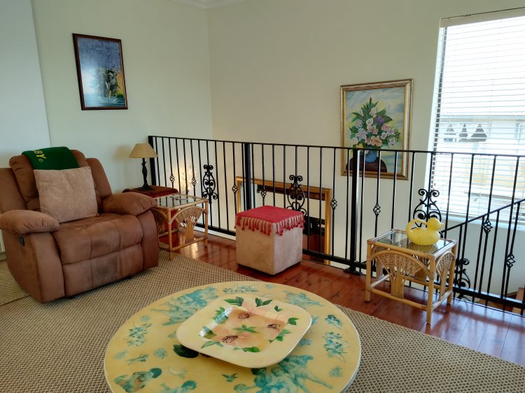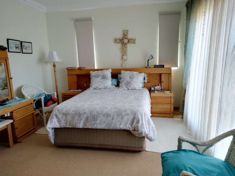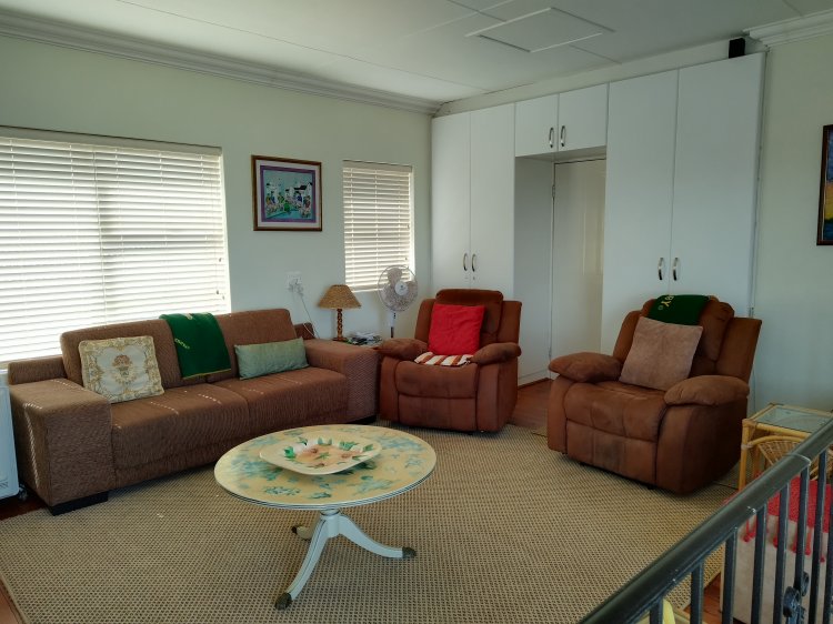 Key Features: - Spectacular sea views from both the living areas and upstairs family room. - Spacious open-plan lounge, dining area and kitchen with ample cupboard space. - Separate scullery/laundry room to keep your kitchen clutter-free. - Two generously sized bedrooms, including a main en-suite. - Upstairs family room with a balcony - can easily be converted into a third bedroom. bathroom with shower, toilet and basin is conveniently located next to this upstairs lounge. - Abundant built-in cupboards, including extra storage in the passage - ideal for linen and more. - Double automated garage with direct access to the home for added convenience. - Neat paving, established front garden and a fully enclosed backyard - pet friendly. - Enhanced security with security gates and clear view window protection.